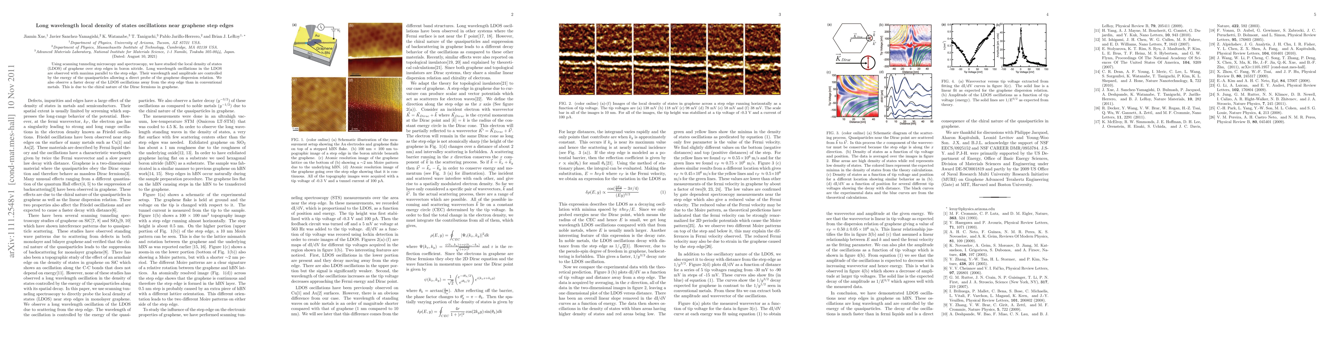 Researchers used scanning tunneling microscopy to study graphene near step edges in boron nitride, observing long wavelength oscillations in local density of states that can probe the graphene dispersion relation.