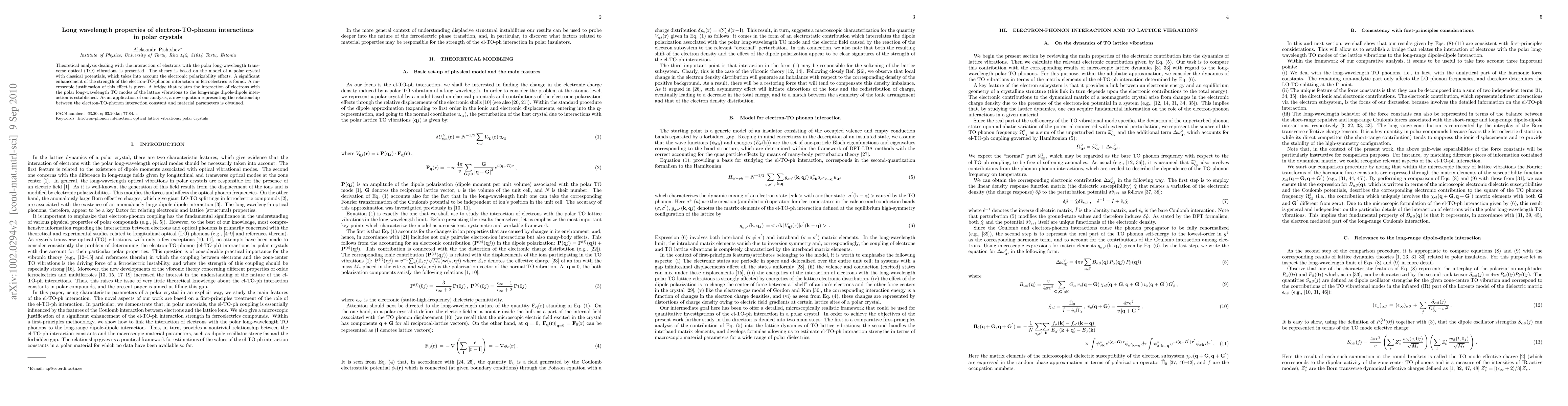 This paper presents a theoretical analysis of electron-TO-phonon interactions in polar crystals, revealing a significant enhancement in ferroelectrics due to electronic polarizability effects. It establishes a connection between these interactions and long-range dipole-dipole interactions, leading to a new equation relating the interaction constant to material parameters.