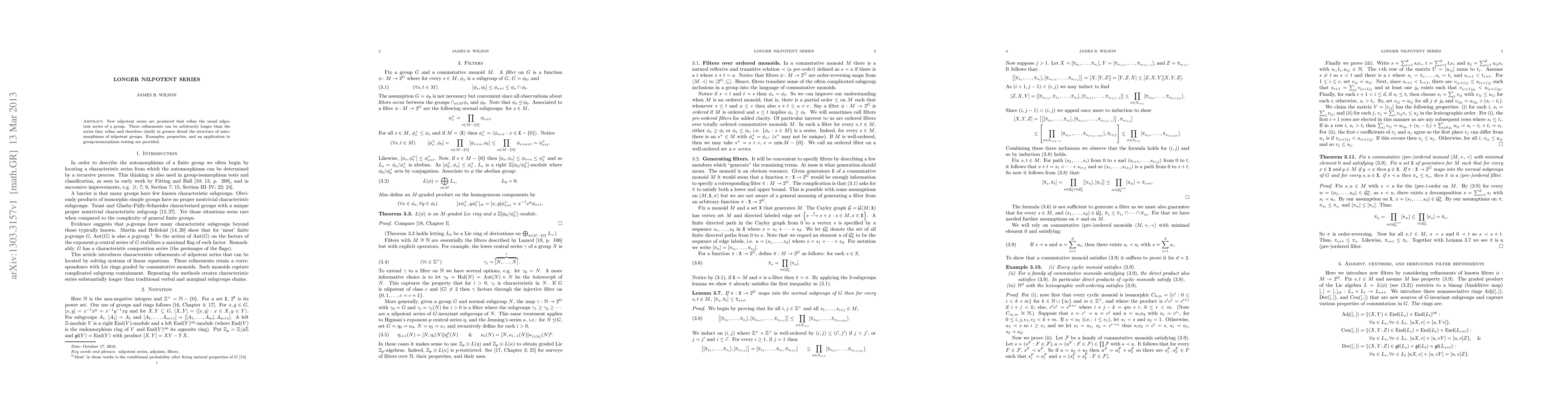 This paper introduces new nilpotent series that refine traditional nilpotent series of groups, offering more detailed insights into the structure of automorphisms. These longer series are exemplified, analyzed for properties, and applied to group-isomorphism testing.