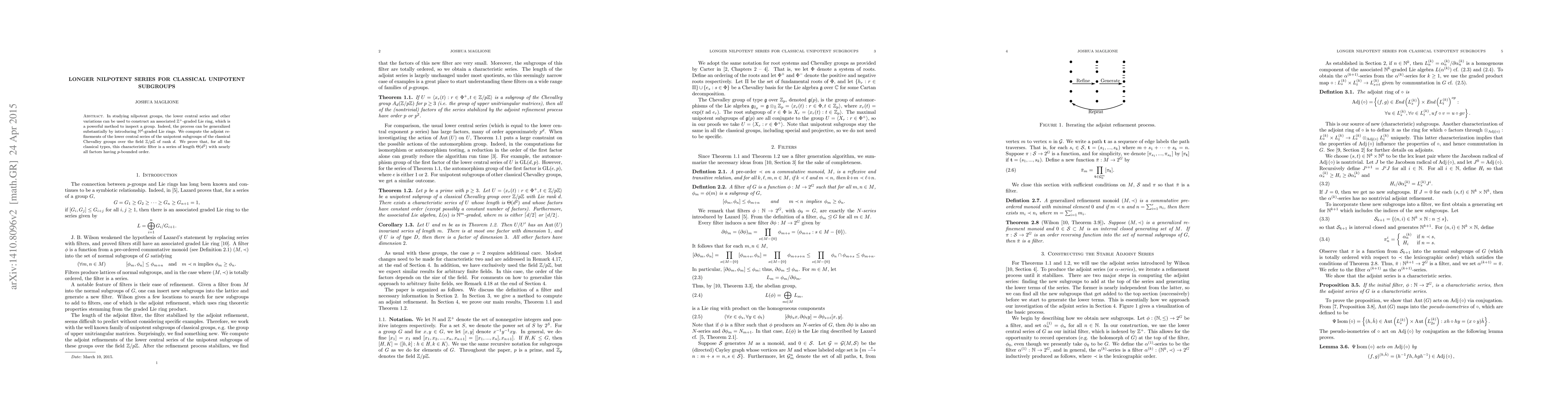 Summary: This paper generalizes the study of nilpotent groups by introducing $\mathbb{N}^d$-graded Lie rings and computes the adjoint refinements of classical Chevalley group unipotent subgroups' lower central series. It proves that the resulting characteristic filter series has length $\Theta(d^2)$ with factors of $p$-bounded order.
