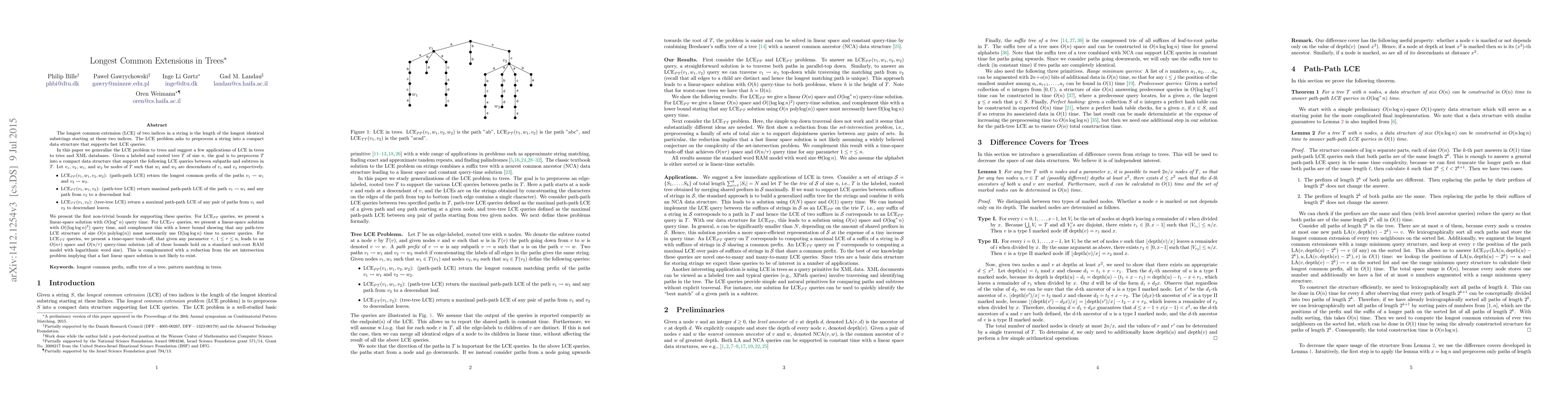 This paper generalizes the longest common extension (LCE) problem to trees, presenting data structures to efficiently answer LCE queries between subpaths and subtrees. It provides linear-space solutions with varying query times for different query types, and establishes lower bounds and trade-offs for optimal performance.