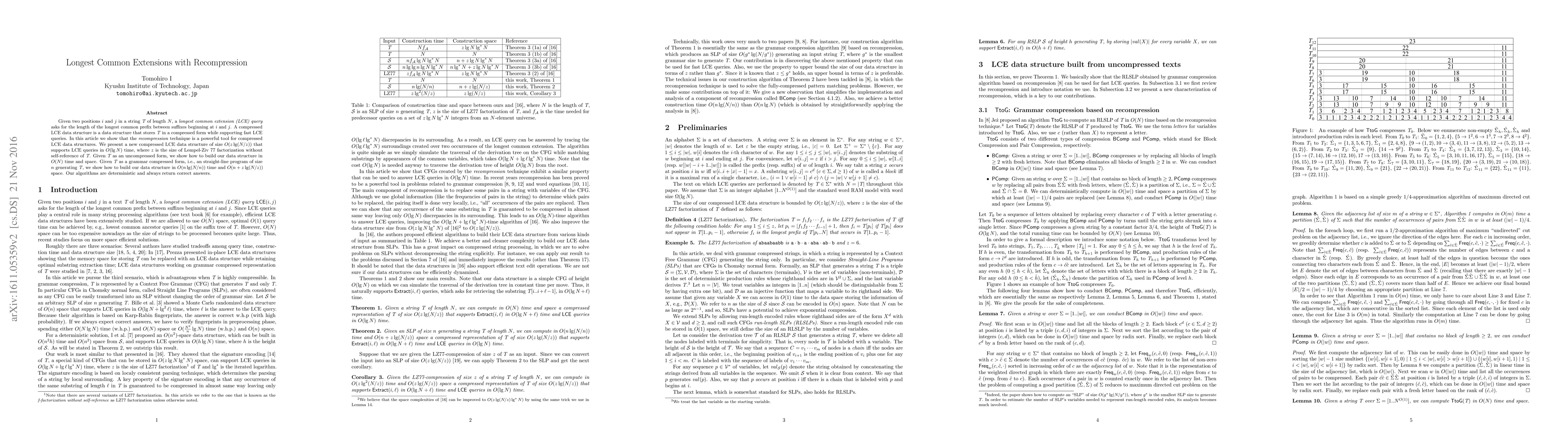 This paper introduces a new compressed data structure for efficiently answering longest common extension (LCE) queries using recompression techniques. The proposed structure achieves $O(z \lg (N/z))$ size and $O(\lg N)$ query time, built in $O(N)$ time from an uncompressed string or $O(n \lg (N/n))$ time from a grammar-compressed form.