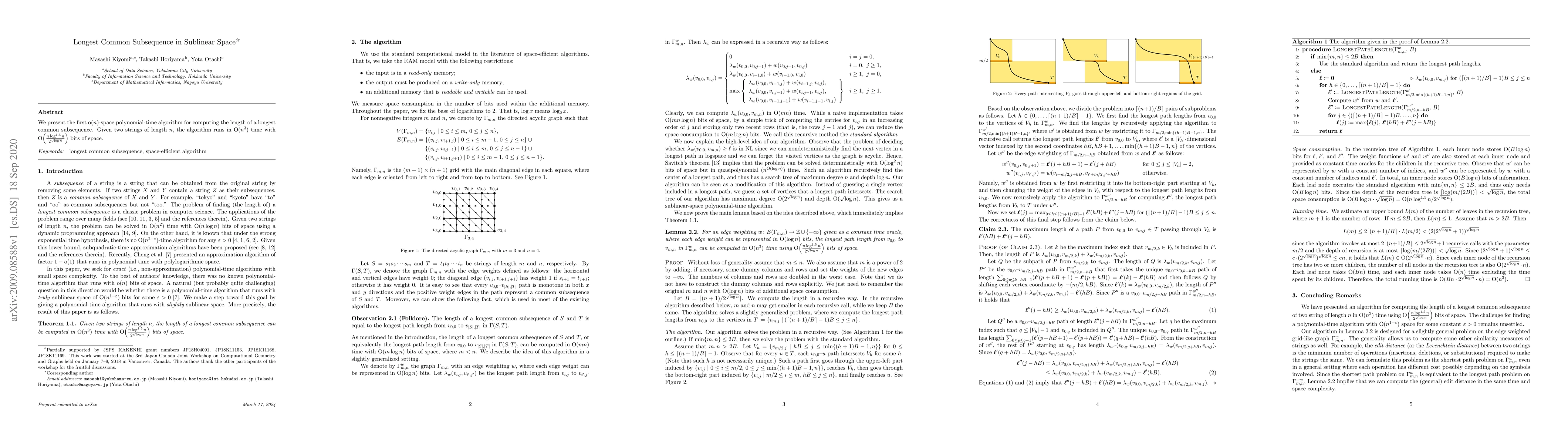 This paper introduces a groundbreaking $\mathrm{o}(n)$-space algorithm that computes the longest common subsequence length in polynomial time, running in $\mathrm{O}(n^{3})$ time using $\mathrm{O}\left(\frac{n \log^{1.5} n}{2^{\sqrt{\log n}}}\right)$ bits of space.