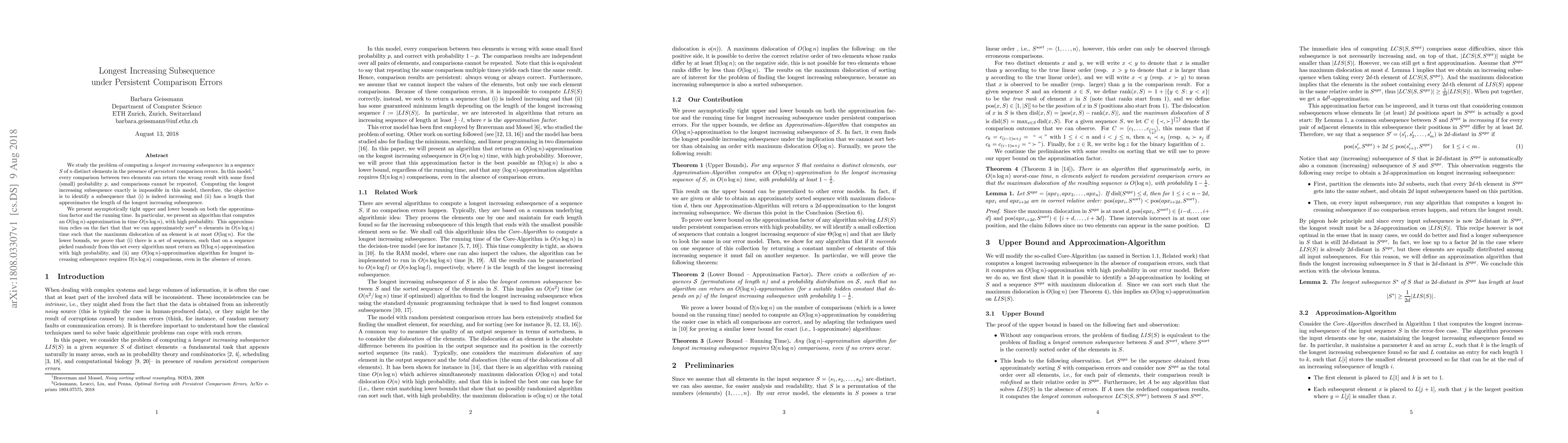 This paper investigates the longest increasing subsequence problem under persistent comparison errors, presenting an algorithm that achieves an $O(\log n)$-approximation in $O(n\log n)$ time. It also establishes tight lower bounds, showing that any $O(\log n)$-approximation algorithm requires $\Omega(n \log n)$ comparisons.