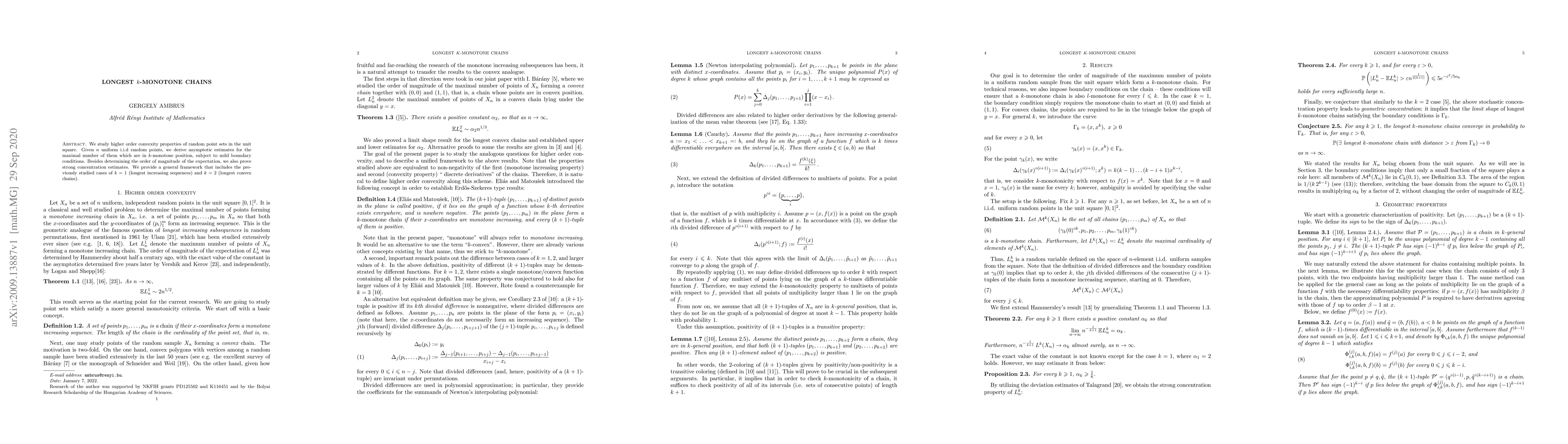 This paper studies the longest chains of k-monotone position in random point sets within a unit square, deriving asymptotic estimates for the maximum number of points and strong concentration estimates.