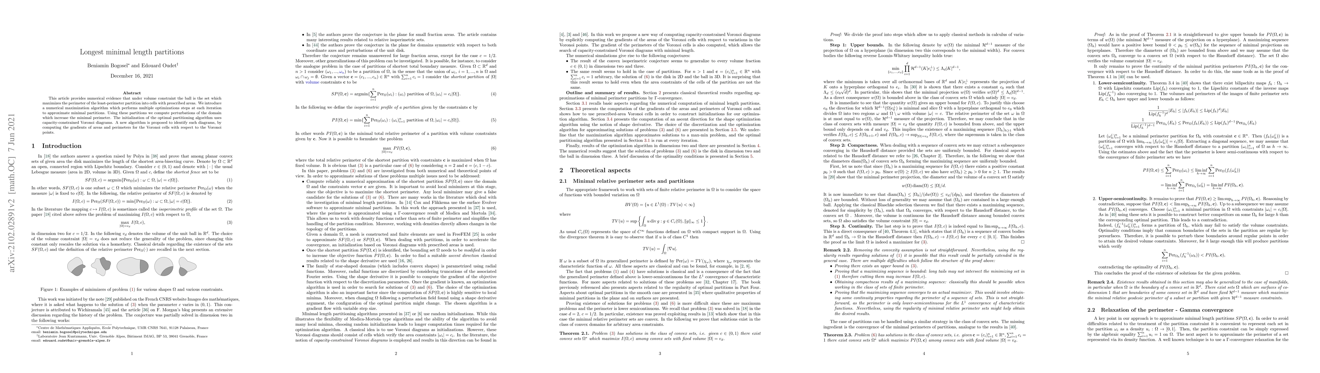 This paper presents numerical evidence that the ball maximizes the perimeter of the least-perimeter partition under volume constraints, introducing a maximization algorithm for approximating minimal partitions. The algorithm leverages capacity-constrained Voronoi diagrams, with a new method for identifying these diagrams through area and perimeter gradient computations.