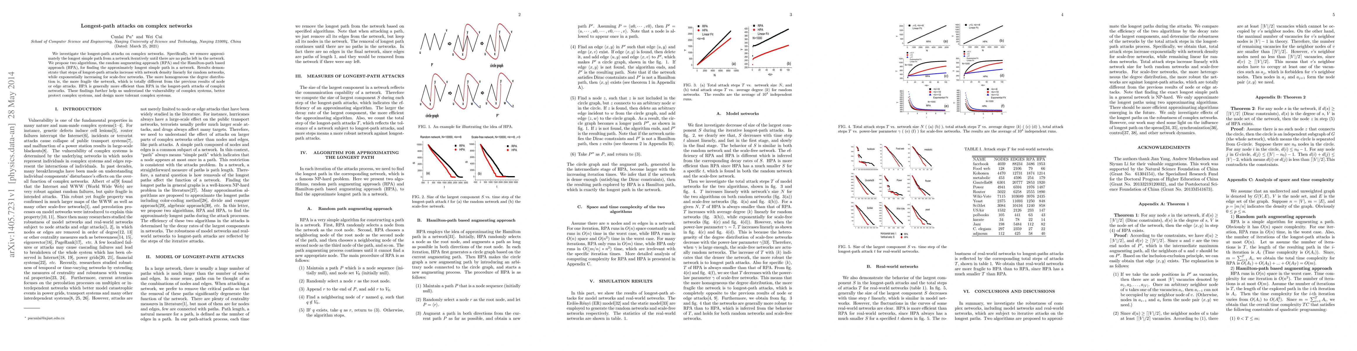 This paper explores longest-path attacks on complex networks, proposing two algorithms to iteratively remove the longest simple paths. It finds that network density affects attack steps differently in random vs. scale-free networks, and that homogeneous degree distributions make networks more fragile. The Hamilton-path based approach is more efficient than the random augmenting approach.