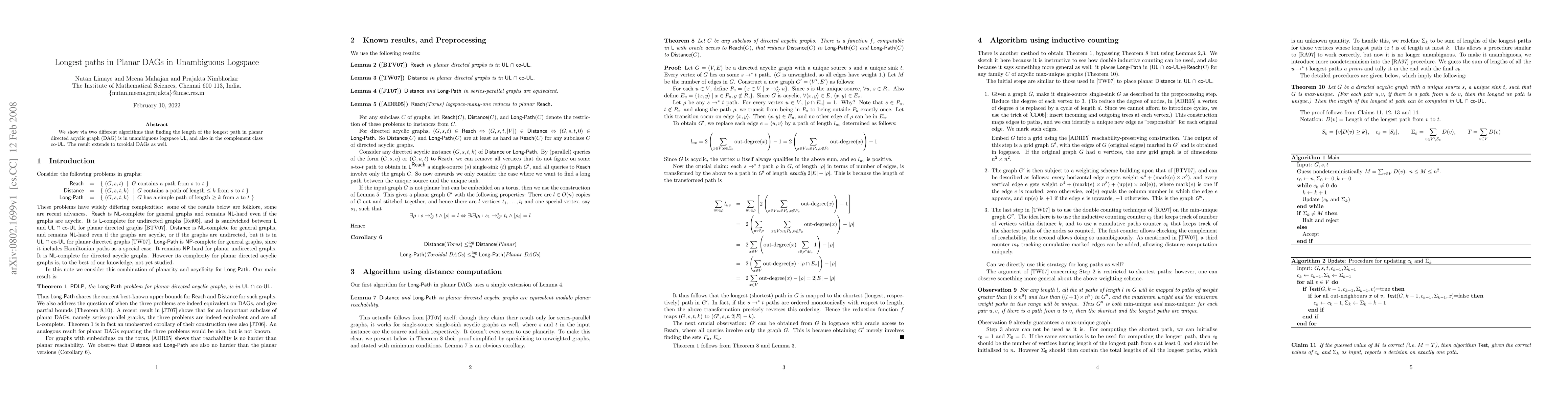 This paper demonstrates two algorithms showing that determining the longest path length in planar directed acyclic graphs (DAGs) can be done in unambiguous logspace (UL) and its complement co-UL. The findings also extend to toroidal DAGs.