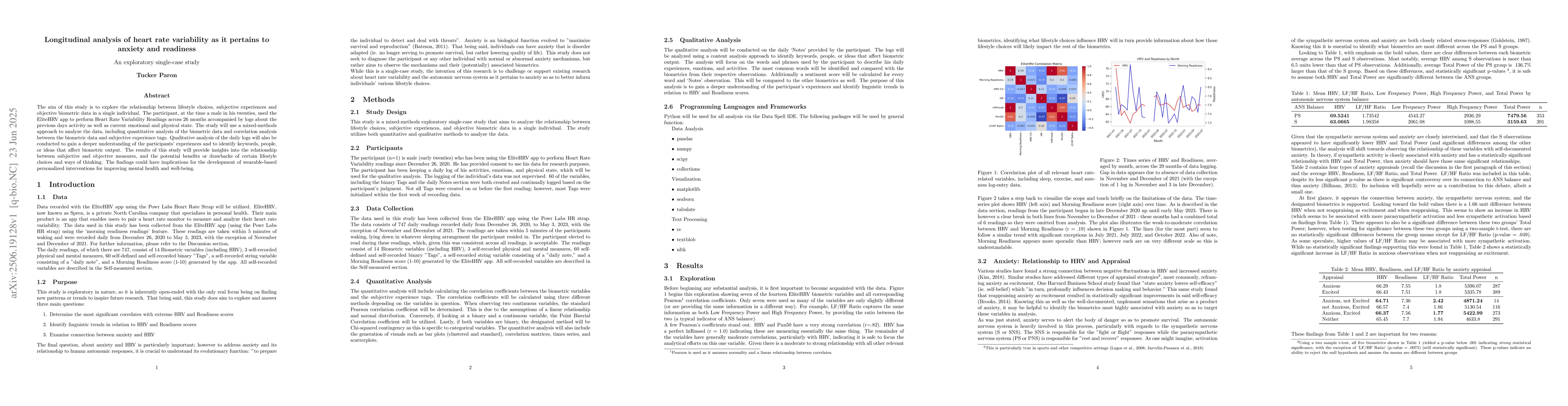 This study examines a single individual's heart rate variability over two years, correlating biometric data with lifestyle, activity, emotions, and thoughts. Utilizing mixed-methods analysis, it aims to uncover links between subjective experiences and objective biometric measures, potentially informing personalized mental health interventions via wearable technology.