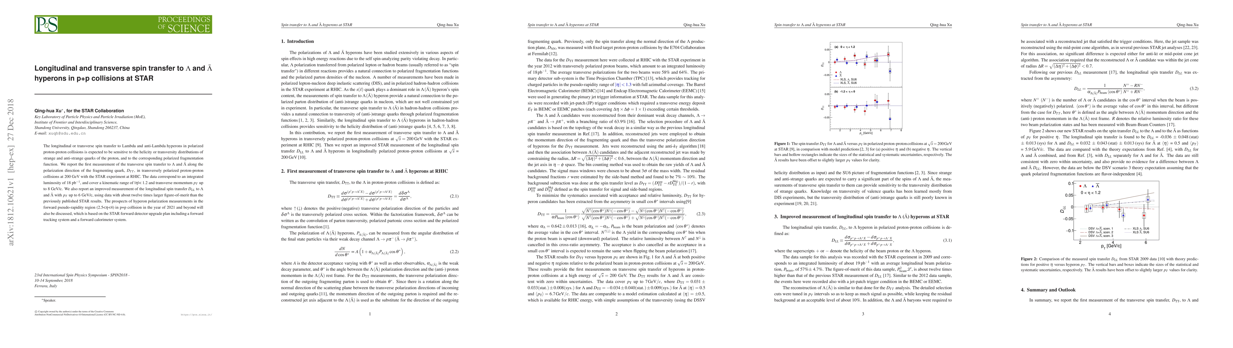 The longitudinal or transverse spin transfer to Lambda and anti-Lambda hyperons in polarized proton-proton collisions is expected to be sensitive to the helicity or transversity distributions of strange and anti-strange quarks of the proton, and to the corresponding polarized fragmentation function. We report the first measurement of the transverse spin transfer to $\Lambda$ and $\bar \Lambda$ along the polarization direction of the fragmenting quark, $D_{TT}$, in transversely polarized proton-proton collisions at 200 GeV with the STAR experiment at RHIC. The data correspond to an integrated luminosity of 18 pb$^{-1}$, and cover a kinematic range of |$\eta$|< 1.2 and transverse momentum $p_T$ up to 8 GeV/c. We also report an improved measurement of the longitudinal spin transfer $D_{LL}$ to $\Lambda$ and $\bar \Lambda$ with $p_T$ up to 6 GeV/c, using data with about twelve times larger figure-of-merit than the previously published STAR results. The prospects of hyperon polarization measurements in the forward pseudo-rapidity region (2.5<$\eta$<4) in p+p collision in the year of 2021 and beyond will also be discussed, which is based on the STAR forward detector upgrade plan including a forward tracking system and a forward calorimeter system.