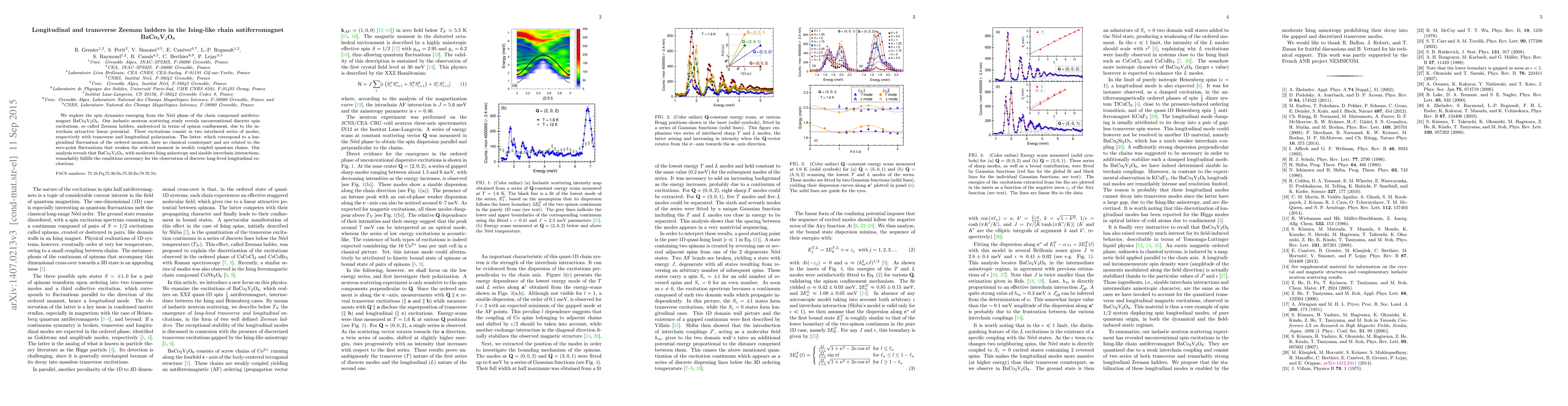 We explore the spin dynamics emerging from the N\'eel phase of the chain compound antiferromagnet BaCo2V2O8. Our inelastic neutron scattering study reveals unconventional discrete spin excitations, so called Zeeman ladders, understood in terms of spinon confinement, due to the interchain attractive linear potential. These excitations consist in two interlaced series of modes, respectively with transverse and longitudinal polarization. The latter have no classical counterpart and are related to the zero-point fluctuations that weaken the ordered moment in weakly coupled quantum chains. Our analysis reveals that BaCo2V2O8, with moderate Ising anisotropy and sizable interchain interactions, remarkably fulfills the conditions necessary for the observation of these longitudinal excitations.