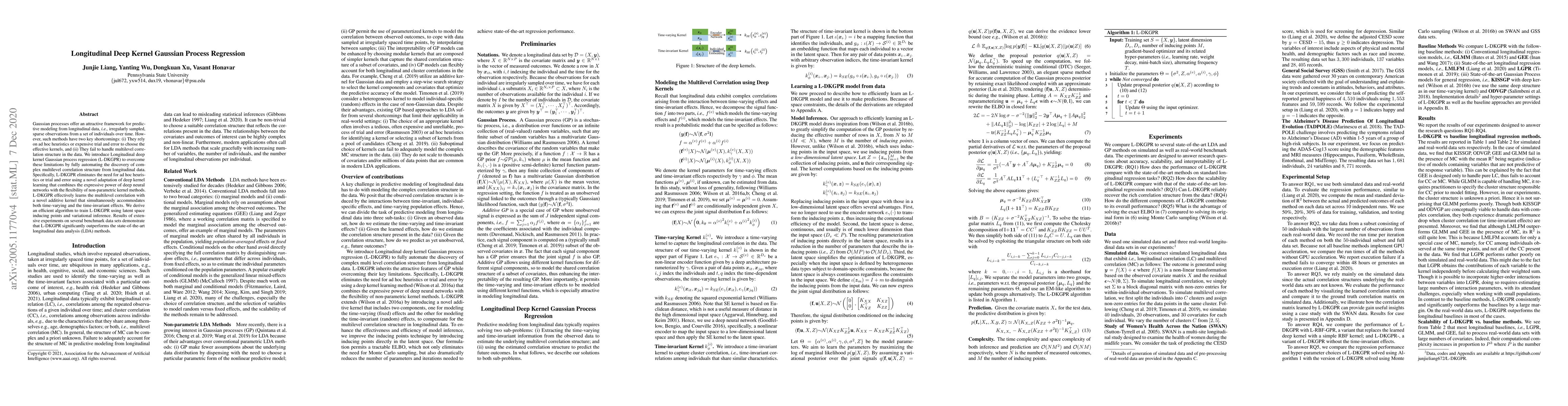 A new method called Longitudinal Deep Kernel Gaussian Process Regression (L-DKGPR) overcomes limitations of existing methods for analyzing longitudinal data, fully automating the discovery of complex correlation structure.