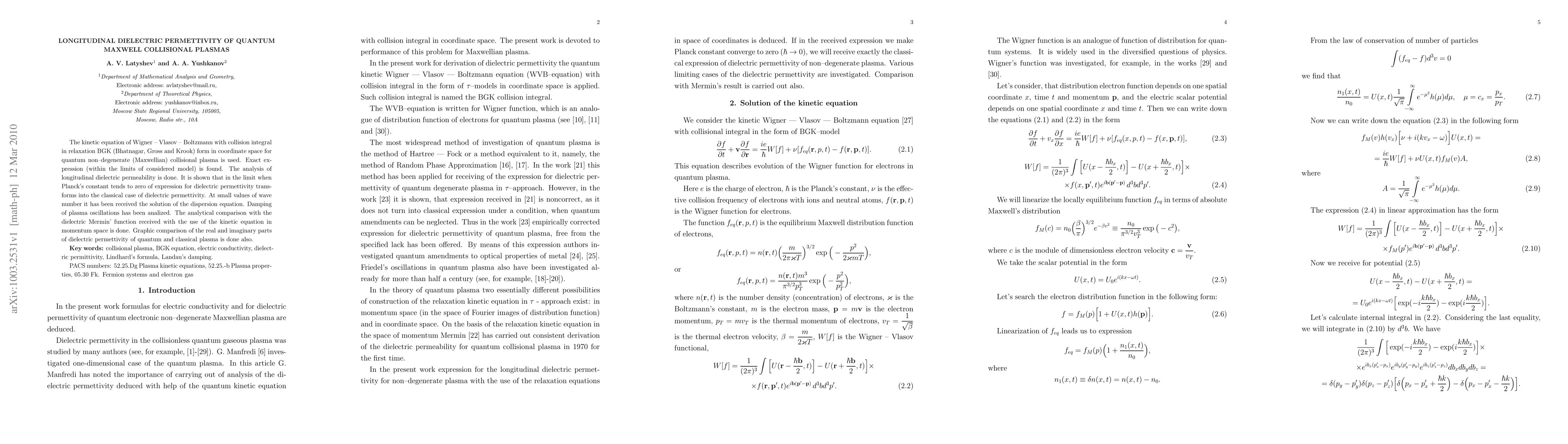 This paper investigates the longitudinal dielectric permittivity of quantum Maxwell collisional plasmas using the Wigner-Vlasov-Boltzmann equation with a relaxation BGK collision integral. It finds an exact expression for dielectric permittivity, showing its transition to the classical case as Planck's constant approaches zero, and provides a comparative analysis with the Mermin function and graphical comparisons of quantum and classical plasmas.