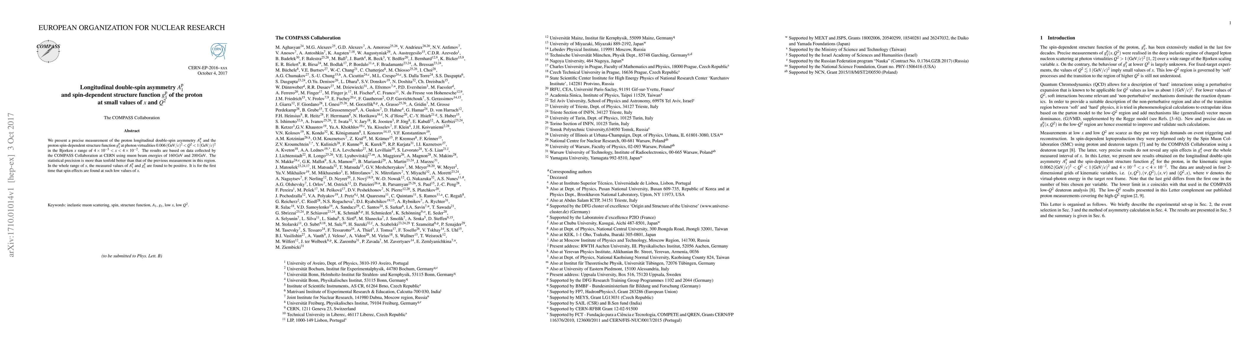 This paper reports a precise measurement of the proton's longitudinal double-spin asymmetry $A_1^{\rm p}$ and the spin-dependent structure function $g_1^{\rm p}$ at low $x$ and $Q^2$ values, revealing positive results and indicating spin effects at unprecedentedly low $x$ values. The data, collected by the COMPASS Collaboration, show a tenfold improvement in statistical precision over previous measurements.