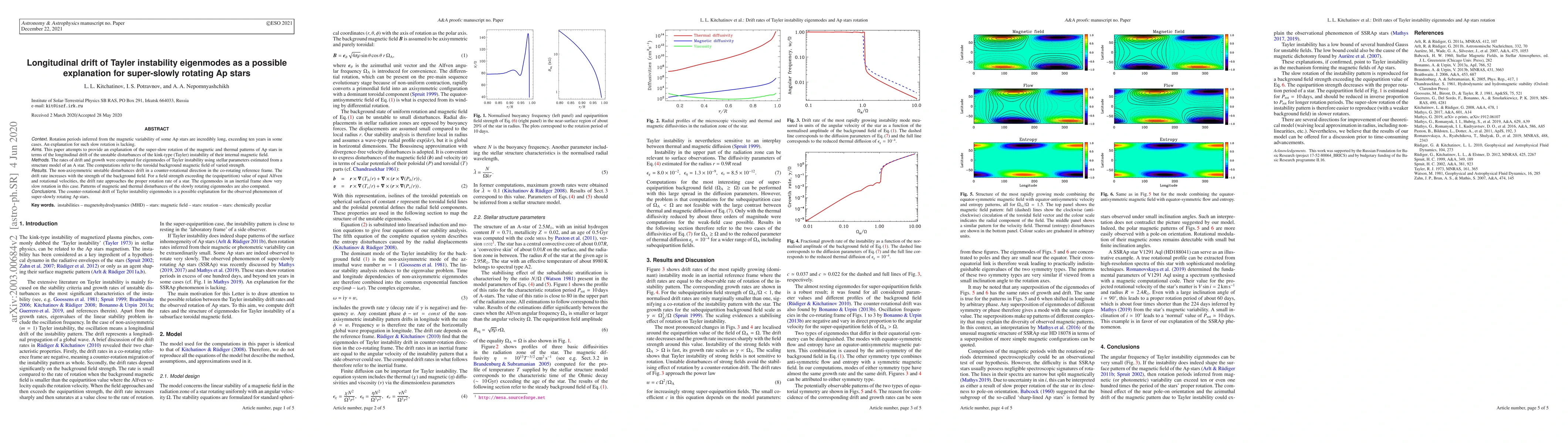 The paper presents detailed computations of Tayler instability eigenmodes' drift rates and growth, linking them to the slow rotation observed in Ap stars.
