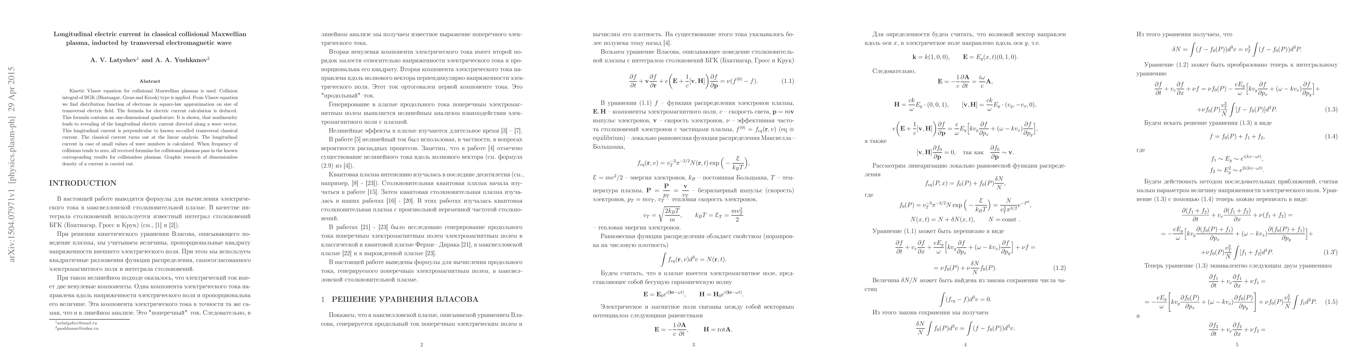This paper investigates the kinetic behavior of collisional Maxwellian plasmas using the Vlasov equation and BGK collision integral, revealing a longitudinal electric current induced by transversal electromagnetic waves. The study deduces a formula for electric current calculation, showing that nonlinearity generates a longitudinal current perpendicular to the classical transversal current.