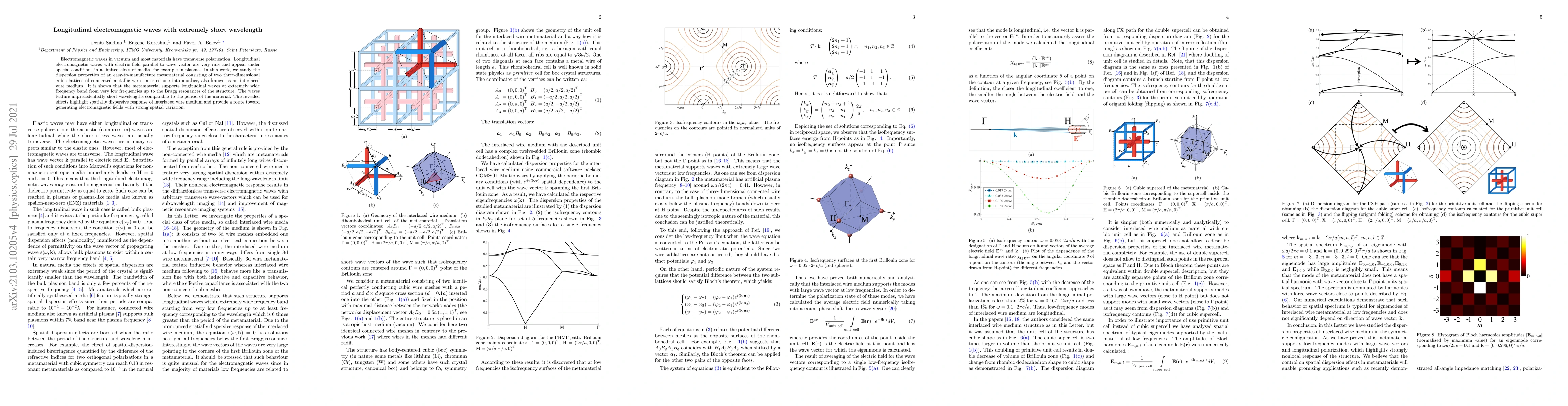 This paper investigates a metamaterial composed of interlaced wire lattices that supports longitudinal electromagnetic waves over a broad frequency range, enabling extremely short wavelengths. The study reveals the spatially dispersive properties of the material, offering a pathway to generate electromagnetic fields with significant spatial variation.