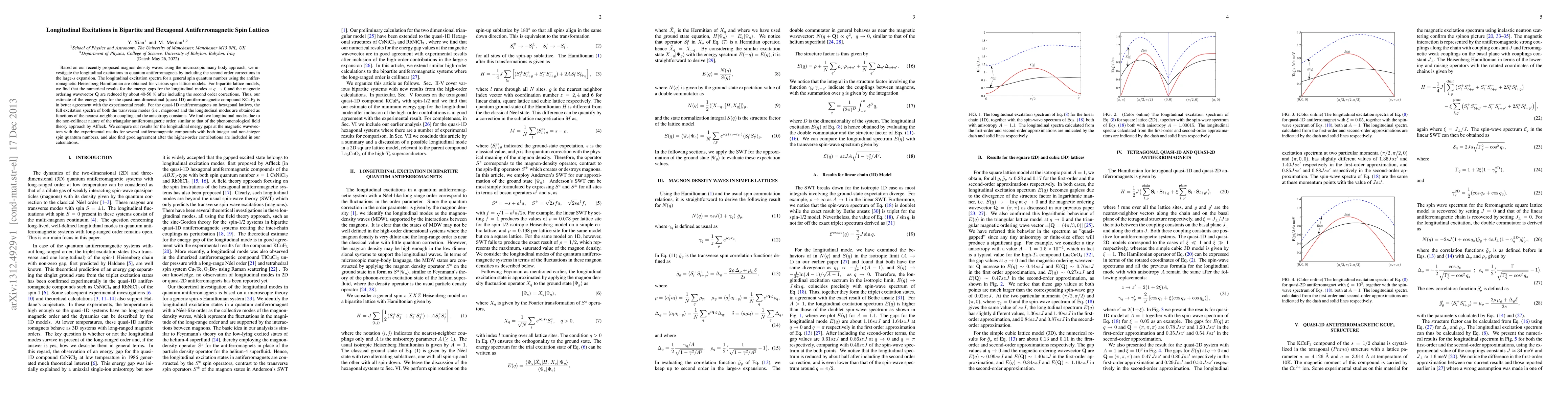 This paper investigates longitudinal excitations in quantum antiferromagnets using a magnon-density-wave approach, finding that second-order corrections reduce energy gaps by 40-50% in bipartite lattices. For hexagonal lattices, it identifies two longitudinal modes due to non-collinear triangular order, showing good agreement with experimental data for various antiferromagnetic compounds.