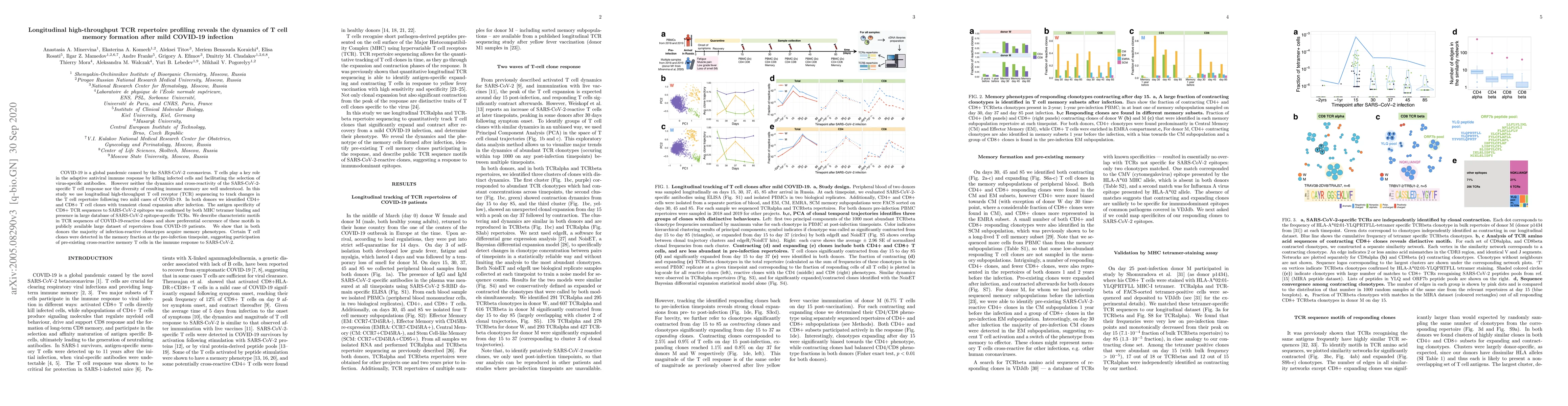 This study uses longitudinal high-throughput TCR sequencing to track the dynamics of T cell memory formation after mild COVID-19 infection, revealing transient clonal expansion and the acquisition of memory phenotypes in CD4+ and CD8+ T cells, with evidence of pre-existing cross-reactive memory T cells.