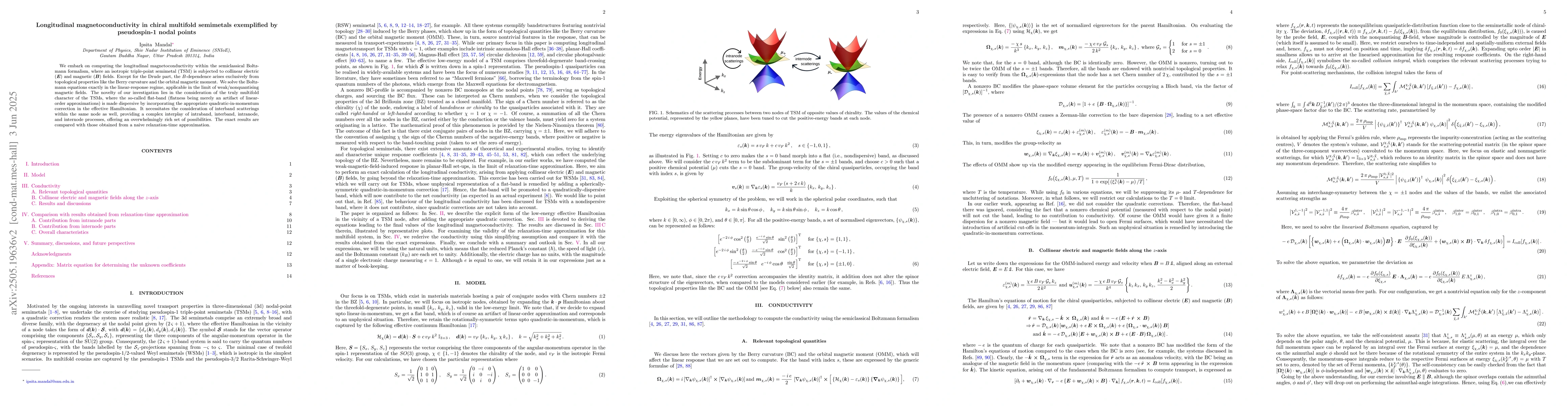 The paper presents an exact solution of Boltzmann equations within the semiclassical Boltzmann formalism, considering the multifold character of TSMs and incorporating quadratic-in-momentum corrections to describe dispersive flat bands, thereby providing a comprehensive analysis of longitudinal magnetoconductivity in these materials.