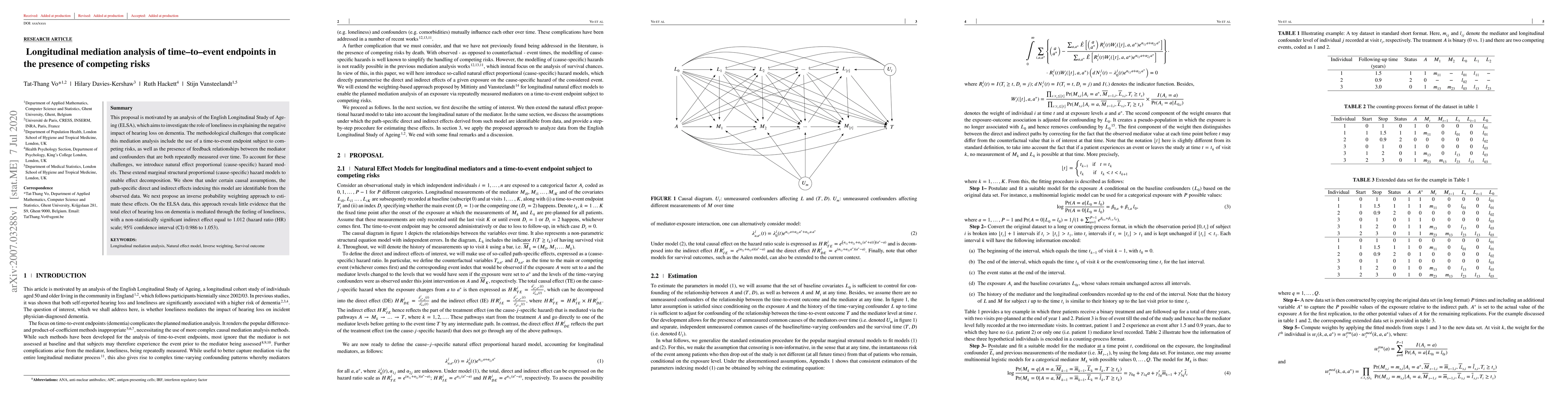 This study uses natural effect proportional hazard models to analyze the English Longitudinal Study of Ageing, aiming to determine if loneliness mediates the link between hearing loss and dementia, finding no significant mediation effect. An inverse probability weighting approach was employed to estimate these effects, revealing a non-statistically significant indirect effect.
