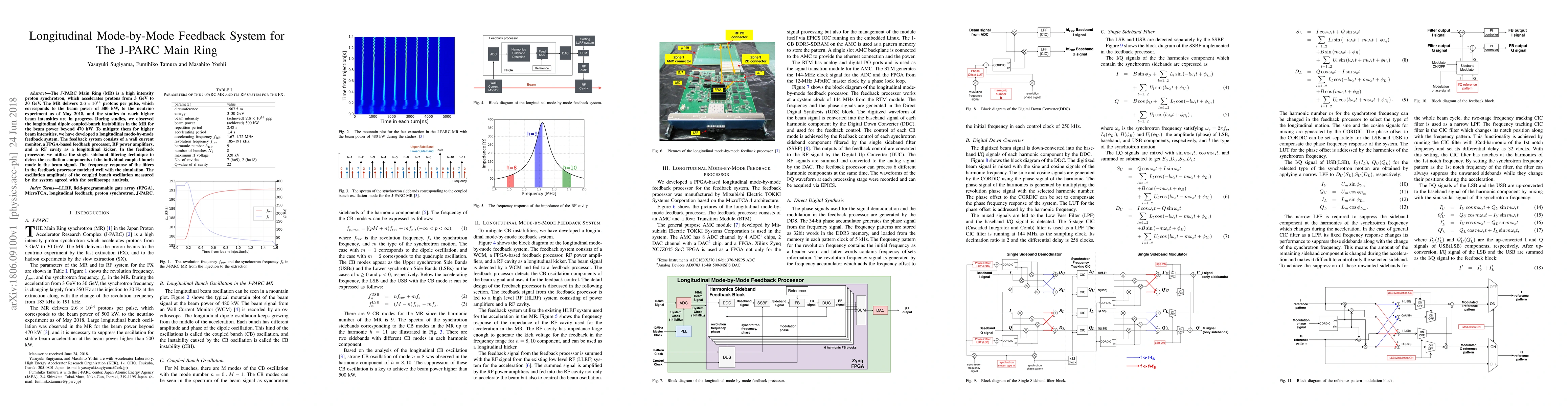 The J-PARC Main Ring employs a longitudinal mode-by-mode feedback system to mitigate dipole coupled-bunch instabilities, enabling higher beam intensities. The system uses a wall current monitor, FPGA-based processor, and RF cavity to detect and correct individual bunch oscillations, matching simulation results.