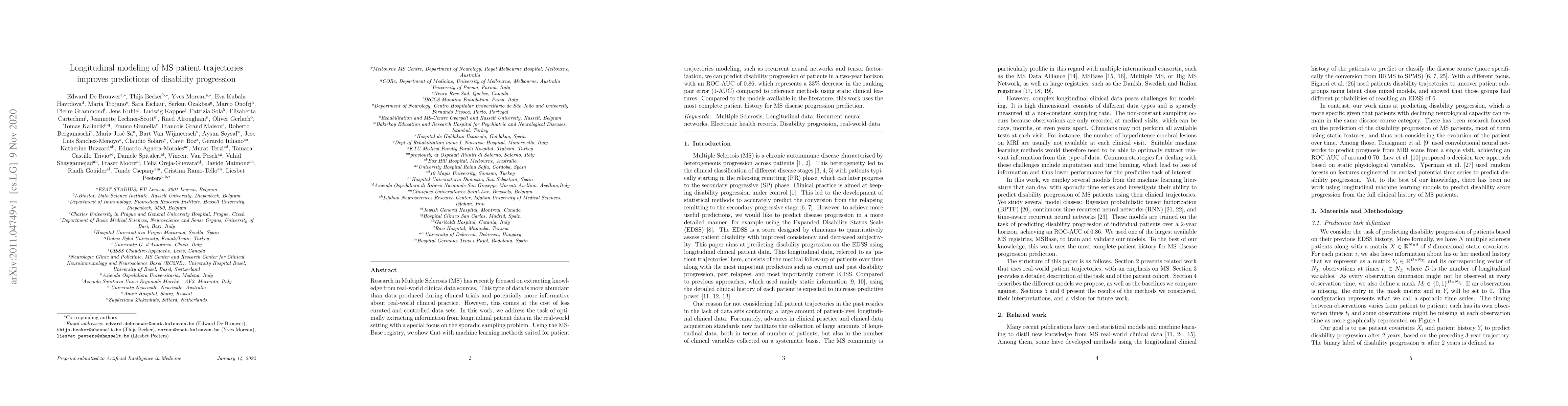 This study utilizes machine learning methods to model longitudinal MS patient data from the MSBase registry, improving predictions of disability progression over two years with an ROC-AUC of 0.86. This approach leverages complete patient histories and addresses the sporadic sampling issue, achieving a 33% reduction in ranking pair error compared to traditional static feature models.