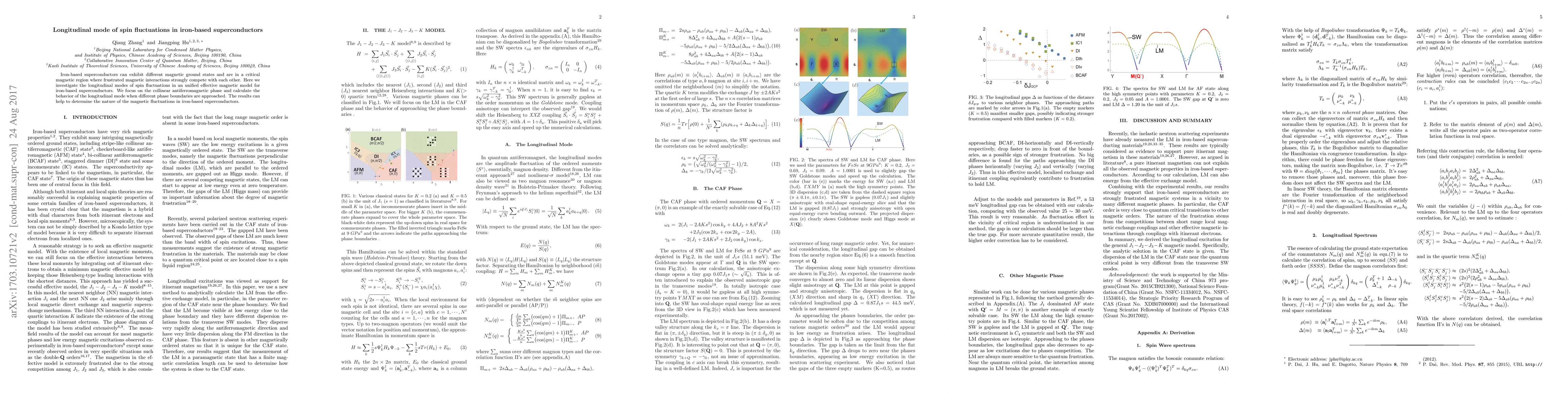 Iron-based superconductors can exhibit different magnetic ground states and are in a critical magnetic region where frustrated magnetic interactions strongly compete with each other. Here we investigate the longitudinal modes of spin fluctuations in an unified effective magnetic model for iron-based superconductors. We focus on the collinear antiferromagnetic phase (CAF) and calculate the behavior of the longitudinal modes when different phase boundaries are approached. The results can help to determine the nature of the magnetic fluctuations in iron-based superconductors.