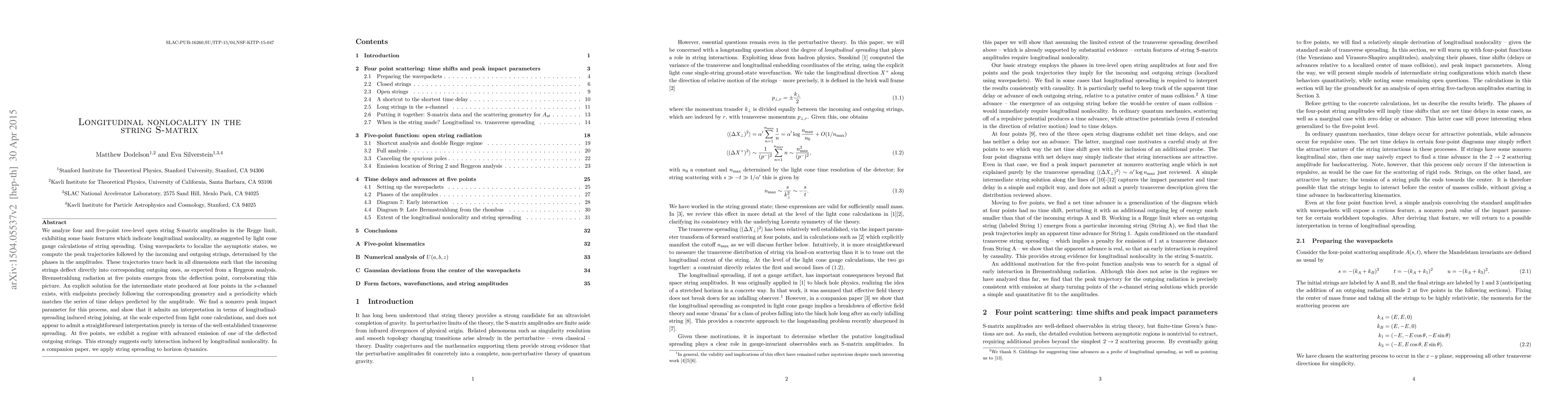 We analyze four and five-point tree-level open string S-matrix amplitudes in the Regge limit, exhibiting some basic features which indicate longitudinal nonlocality, as suggested by light cone gauge calculations of string spreading. Using wavepackets to localize the asymptotic states, we compute the peak trajectories followed by the incoming and outgoing strings, determined by the phases in the amplitudes. These trajectories trace back in all dimensions such that the incoming strings deflect directly into corresponding outgoing ones, as expected from a Reggeon analysis. Bremsstrahlung radiation at five points emerges from the deflection point, corroborating this picture. An explicit solution for the intermediate state produced at four points in the $s$-channel exists, with endpoints precisely following the corresponding geometry and a periodicity which matches the series of time delays predicted by the amplitude. We find a nonzero peak impact parameter for this process, and show that it admits an interpretation in terms of longitudinal-spreading induced string joining, at the scale expected from light cone calculations, and does not appear to admit a straightforward interpretation purely in terms of the well-established transverse spreading. At five points, we exhibit a regime with advanced emission of one of the deflected outgoing strings. This strongly suggests early interaction induced by longitudinal nonlocality. In a companion paper, we apply string spreading to horizon dynamics.