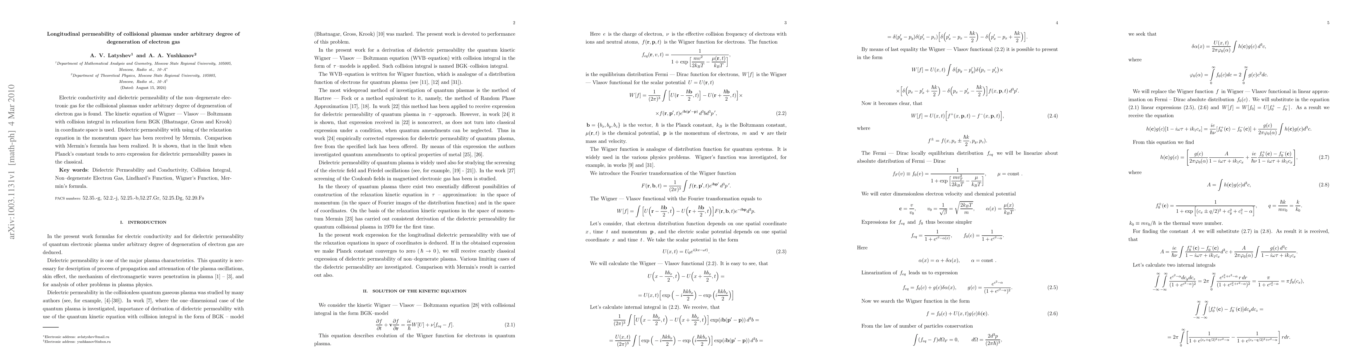 This paper investigates the electric conductivity and dielectric permeability of collisional plasmas under varying degrees of electron gas degeneracy using the Wigner-Vlasov-Boltzmann kinetic equation. The study compares the derived results with Mermin's formula, showing that the dielectric permeability converges to classical limits as Planck's constant approaches zero.