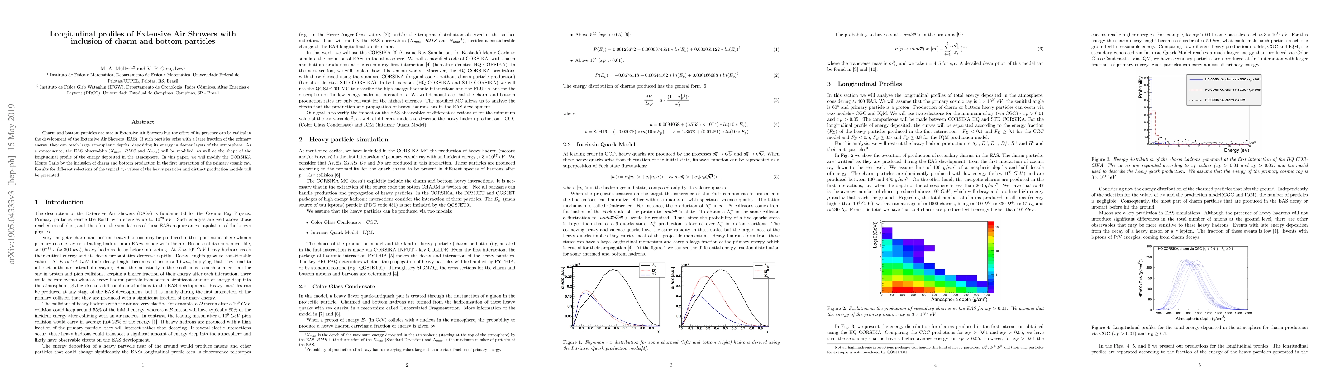 Charm and bottom particles are rare in Extensive Air Showers but the effect of its presence can be radical in the development of the Extensive Air Showers (EAS). If such particles arise with a large fraction of the primary energy, they can reach large atmospheric depths, depositing its energy in deeper layers of the atmosphere. As a consequence, the EAS observables ($X_{max}$, $RMS$ and $N_{max}$) will be modified, as well as the shape of the longitudinal profile of the energy deposited in the atmosphere. In this paper, we will modify the CORSIKA Monte Carlo by the inclusion of charm and bottom production in the first interaction of the primary cosmic ray. Results for different selections of the typical $x_F$ values of the heavy particles and distinct production models will be presented.