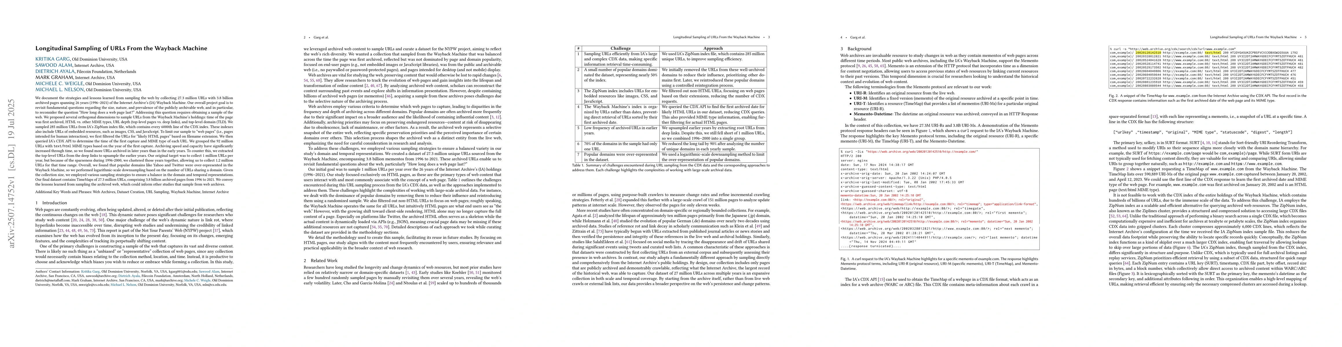 We document strategies and lessons learned from sampling the web by collecting 27.3 million URLs with 3.8 billion archived pages spanning 26 years (1996-2021) from the Internet Archive's (IA) Wayback Machine. Our goal is to revisit fundamental questions regarding the size, nature, and prevalence of the publicly archivable web, in particular, to reconsider the question: "How long does a web page last?" Addressing this question requires obtaining a sample of the web. We proposed several dimensions to sample URLs from the Wayback Machine's holdings: time of first archive, HTML vs. other MIME types, URL depth (top-level pages vs. deep links), and top-level domain (TLD). We sampled 285 million URLs from IA's ZipNum index file, which contains every 6000th line of the CDX index. These indexes also include URLs of embedded resources such as images, CSS, and JavaScript. To limit our sample to "web pages" (i.e., pages intended for human interaction), we filtered for likely HTML pages based on filename extension. We then queried IA's CDX API to determine the time of first capture and MIME type of each URL. We grouped 92 million text/html URLs based on year of first capture. Archiving speed and capacity have increased over time, so we found more URLs archived in later years. To counter this, we extracted top-level URLs from deep links to upsample earlier years. Our target was 1 million URLs per year, but due to sparseness during 1996-2021, we clustered those years, collecting 1.2 million URLs for that range. Popular domains like Yahoo and Twitter were over-represented, so we performed logarithmic-scale downsampling. Our final dataset contains TimeMaps of 27.3 million URLs, comprising 3.8 billion archived pages. We convey lessons learned from sampling the archived web to inform future studies.