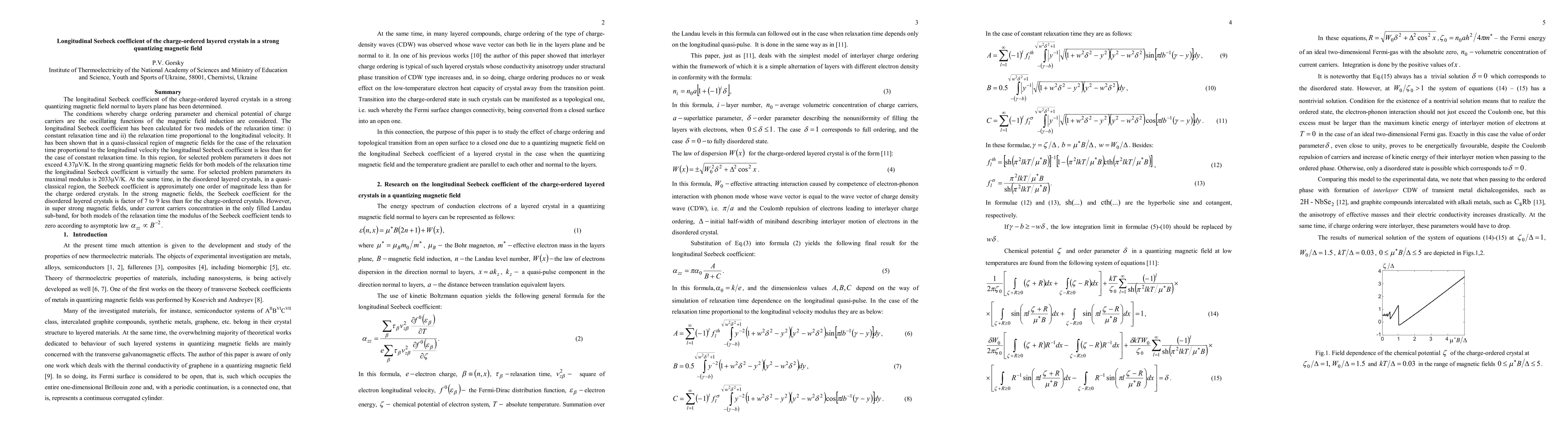 This study investigates the longitudinal Seebeck coefficient in charge-ordered layered crystals under strong quantizing magnetic fields, revealing significant differences compared to disordered crystals. The coefficient varies with magnetic field strength and relaxation time models, showing a lower value in quasi-classical regions when relaxation time is velocity-dependent.