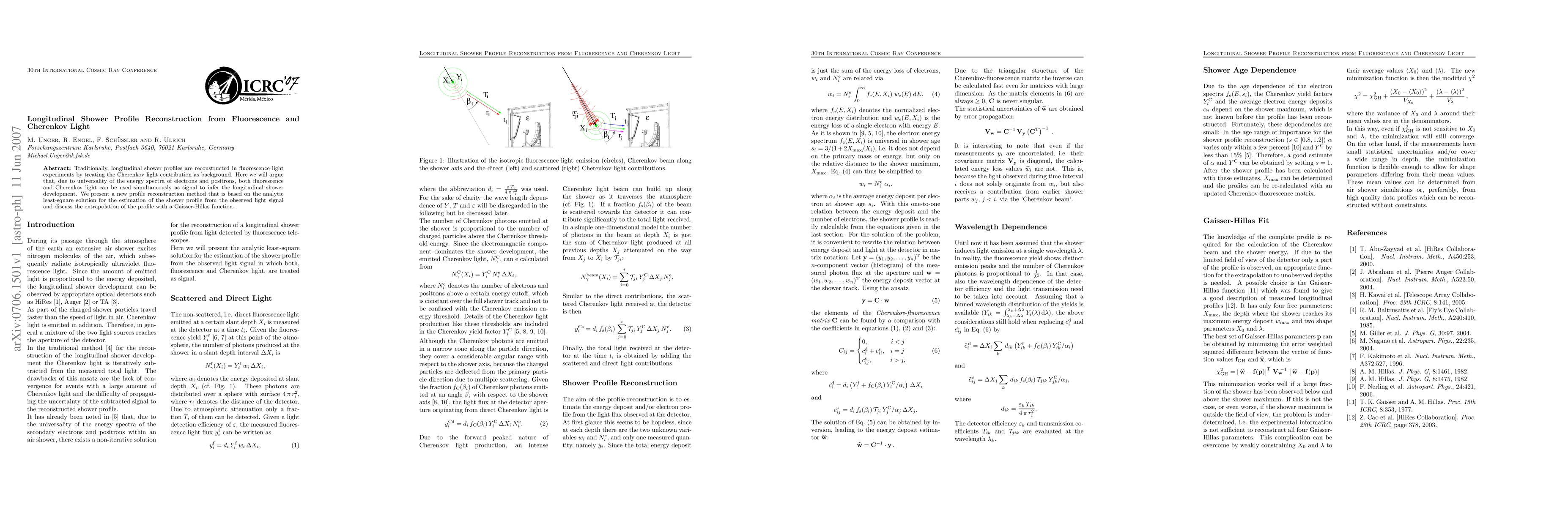 This paper proposes a new method for reconstructing longitudinal shower profiles by utilizing both fluorescence and Cherenkov light, arguing that their energy spectra's universality allows them to be used together as signals. The method employs an analytic least-square solution for profile estimation and uses a Gaisser-Hillas function for profile extrapolation.