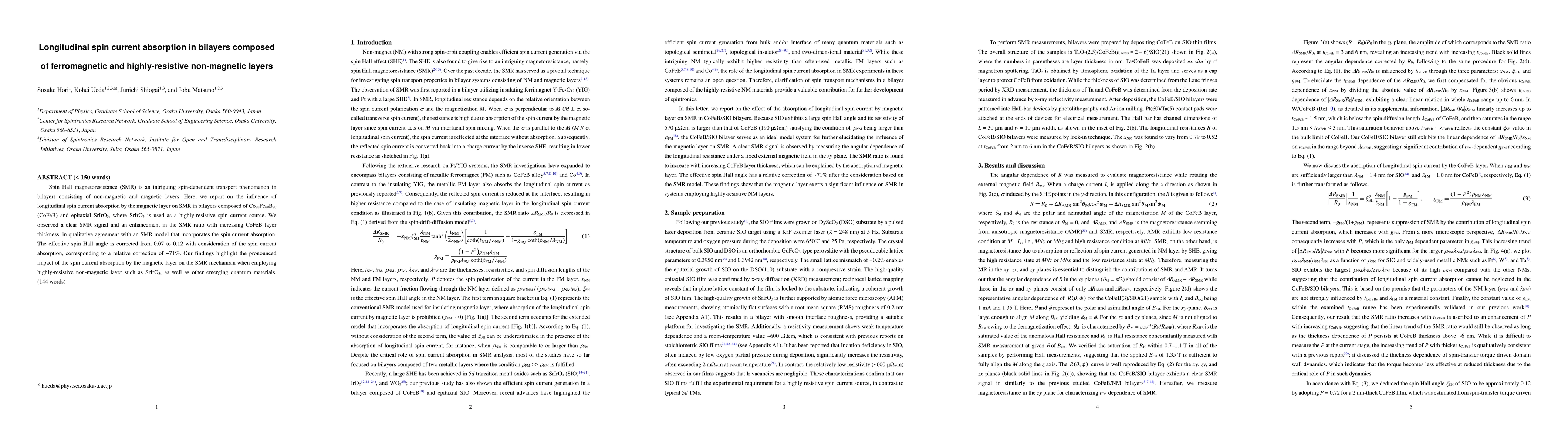 Spin Hall magnetoresistance (SMR) is an intriguing spin-dependent transport phenomenon in bilayers consisting of non-magnetic and magnetic layers. Here, we report on the influence of longitudinal spin current absorption by the magnetic layer on SMR in bilayers composed of Co$_{20}$Fe$_{60}$B$_{20}$ (CoFeB) and epitaxial SrIrO$_{3}$, where SrIrO$_{3}$ is used as a highly-resistive spin current source. We observed a clear SMR signal and an enhancement in the SMR ratio with increasing CoFeB layer thickness, in qualitative agreement with an SMR model that incorporates the spin current absorption. The effective spin Hall angle is corrected from 0.07 to 0.12 with consideration of the spin current absorption, corresponding to a relative correction of ~71%. Our findings highlight the pronounced impact of the spin current absorption by the magnetic layer on the SMR mechanism when employing highly-resistive non-magnetic layer such as SrIrO$_{3}$, as well as other emerging quantum materials.