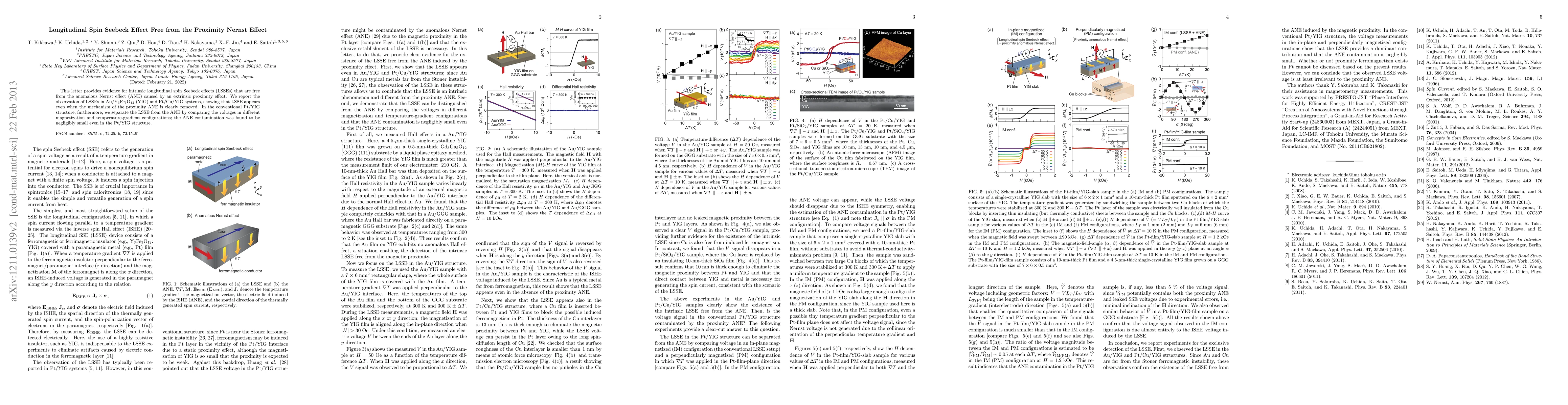 This paper demonstrates intrinsic longitudinal spin Seebeck effects (LSSEs) in Au/Y3Fe5O12 (YIG) and Pt/Cu/YIG systems, free from the anomalous Nernst effect (ANE) caused by extrinsic proximity effects. The study shows negligible ANE contamination in the conventional Pt/YIG structure, confirming the presence of pure LSSEs.