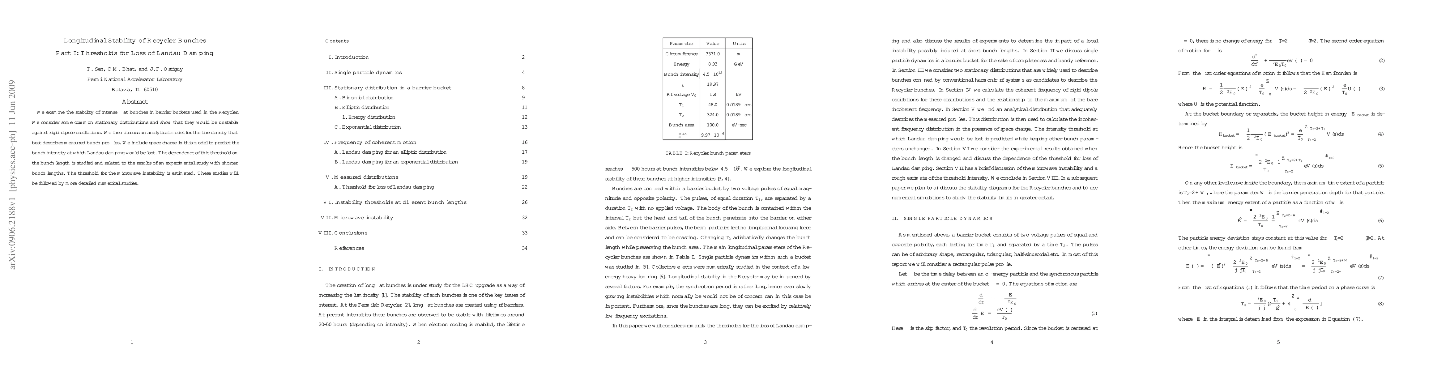 We examine the stability of intense flat bunches in barrier buckets used in the Recycler. We consider some common stationary distributions and show that they would be unstable against rigid dipole oscillations. We then discuss an analytical model for the line density that best describes measured bunch profiles. We include space charge in this model to predict the bunch intensity at which Landau damping would be lost. The dependence of this threshold on the bunch length is studied and related to the results of an experimental study with shorter bunch lengths. The threshold for the microwave instability is estimated. These studies will be followed by more detailed numerical studies.