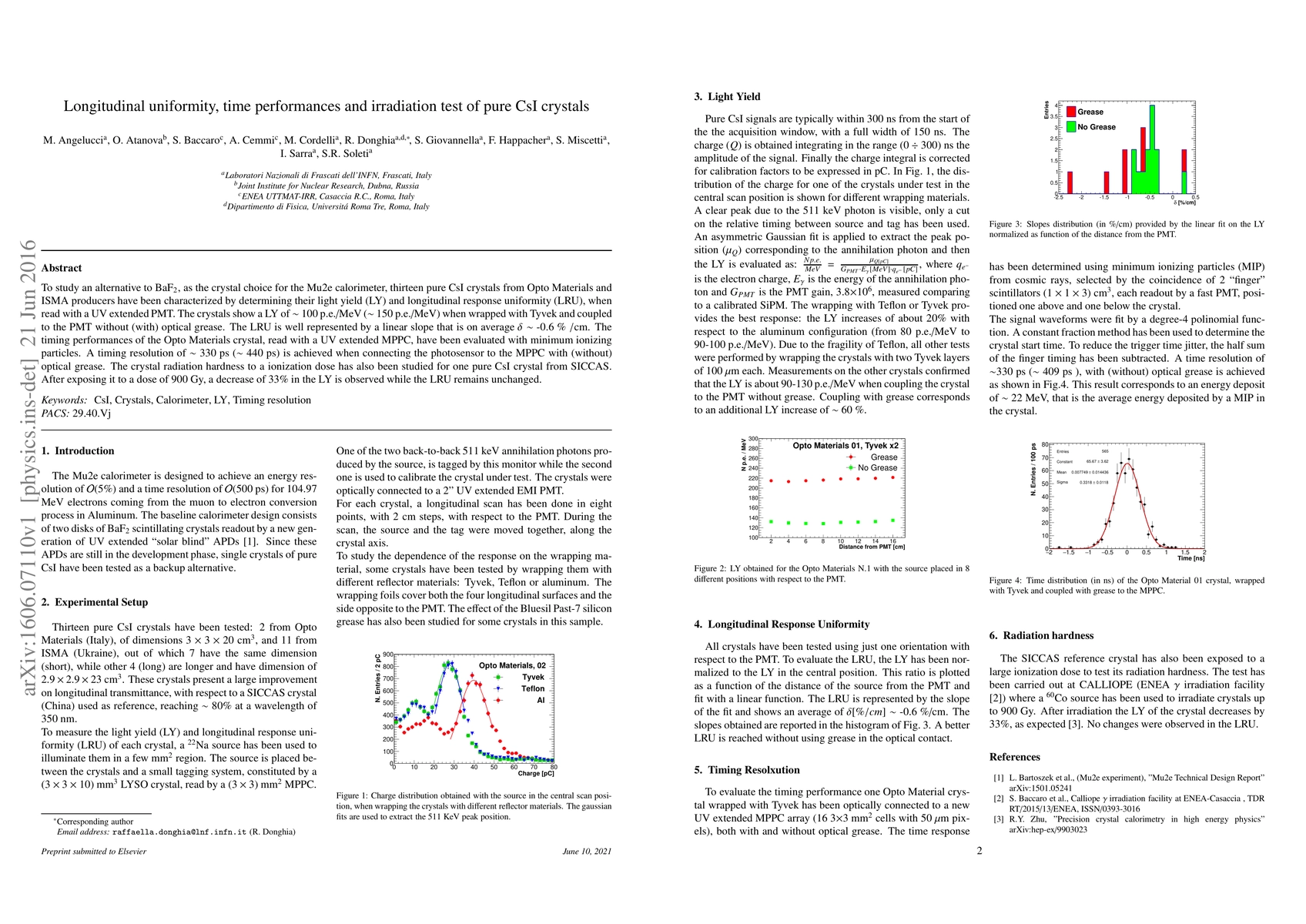 This study evaluates pure CsI crystals as an alternative to BaF2 for the Mu2e calorimeter, assessing their light yield, longitudinal response uniformity, and timing performance. The crystals show a light yield of ~100 p.e./MeV and a linear longitudinal response uniformity slope of -0.6 %/cm. Radiation hardness tests reveal a 33% decrease in light yield after exposure to 900 Gy, but no change in uniformity.
