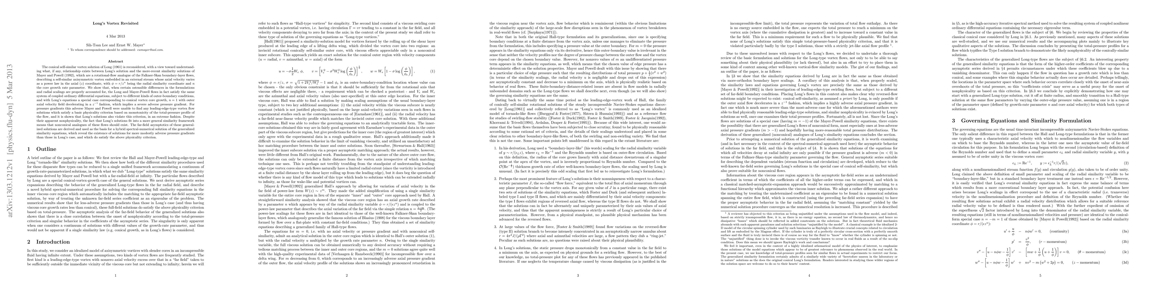 This paper revisits Long's 1961 vortex solution, finding it to be a special case of Mayer-Powell's 1992 rotational-flow similarity solutions. Both sets of solutions, though differing in formulations and scalings, actually satisfy the same ODEs with distinct outer-boundary conditions. However, Long's solutions, characterized by an extreme adverse pressure gradient, violate physicality criteria. Despite this, the paper demonstrates that nonconical analogues of these flows should exist, presenting a hybrid spectral-numerical method to find solutions for milder adverse pressure gradients that meet physicality criteria.