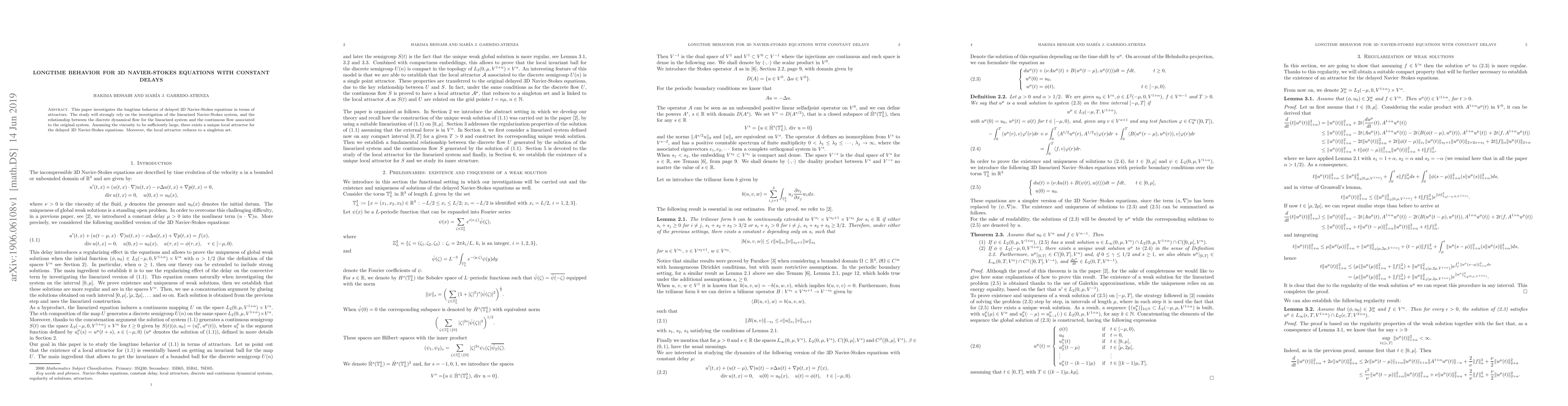 This paper examines the long-term behavior of delayed 3D Navier-Stokes equations, focusing on attractors. It finds a unique local attractor for sufficiently viscous delayed systems, which reduces to a singleton set.