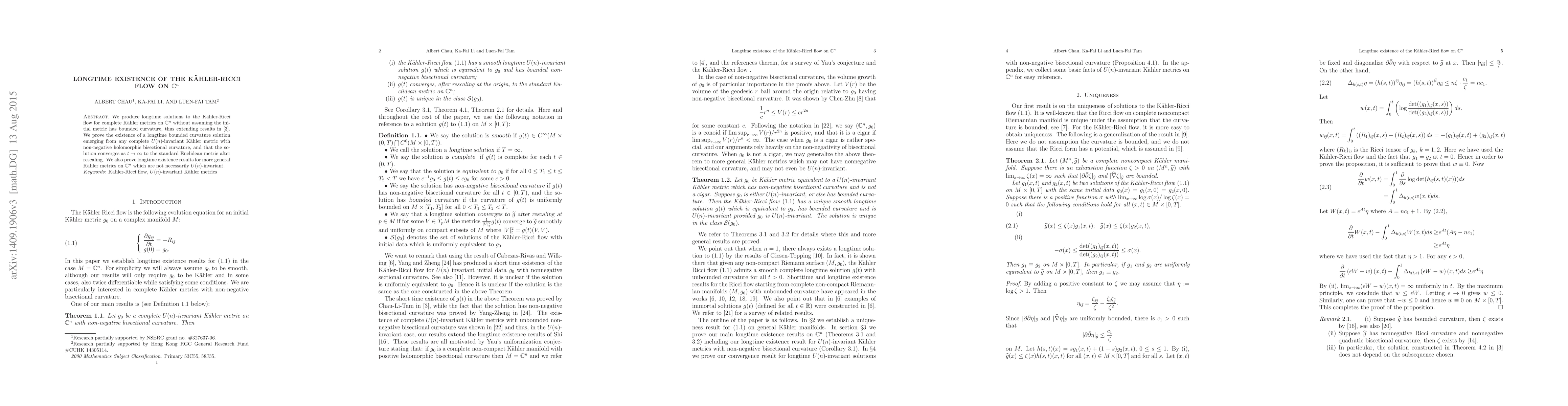 This paper establishes longtime solutions for the Kähler-Ricci flow on $\Bbb C ^n$ without requiring initial bounded curvature, extending prior results. It demonstrates the emergence of a bounded curvature solution from any complete $U(n)$-invariant Kähler metric with non-negative holomorphic bisectional curvature, which converges to the Euclidean metric as time approaches infinity.