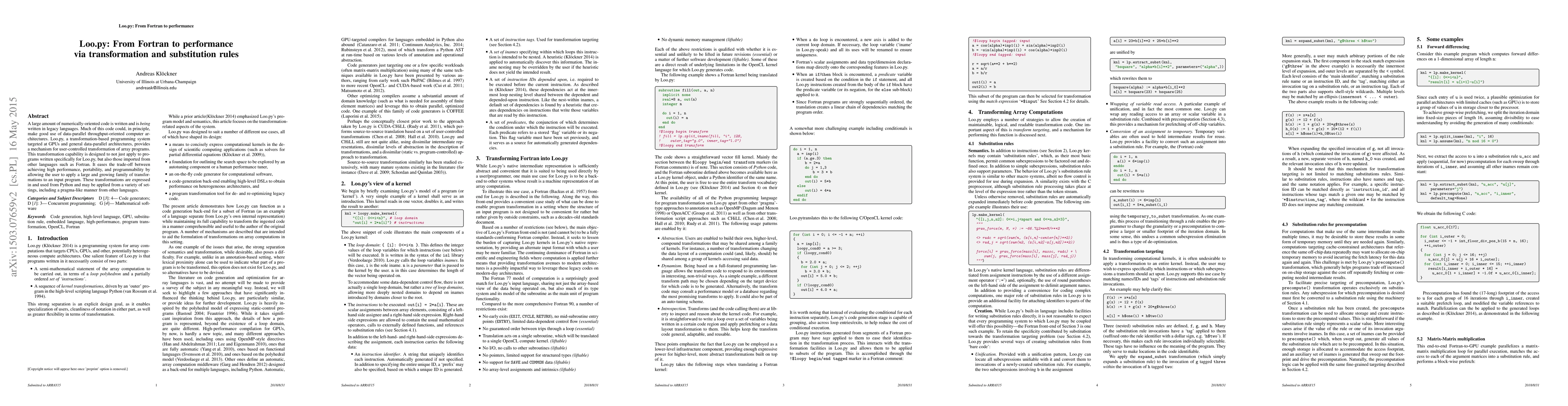 A large amount of numerically-oriented code is written and is being written in legacy languages. Much of this code could, in principle, make good use of data-parallel throughput-oriented computer architectures. Loo.py, a transformation-based programming system targeted at GPUs and general data-parallel architectures, provides a mechanism for user-controlled transformation of array programs. This transformation capability is designed to not just apply to programs written specifically for Loo.py, but also those imported from other languages such as Fortran. It eases the trade-off between achieving high performance, portability, and programmability by allowing the user to apply a large and growing family of transformations to an input program. These transformations are expressed in and used from Python and may be applied from a variety of settings, including a pragma-like manner from other languages.