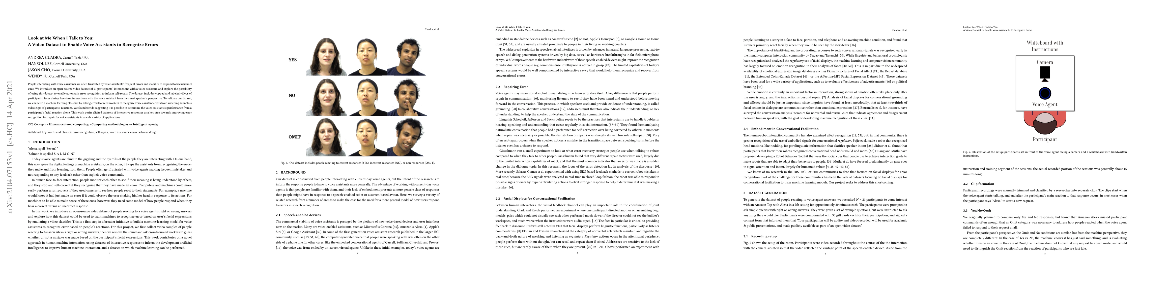 Researchers created a video dataset to help voice assistants recognize errors in conversations, aiming to improve their performance and user experience. The study found that facial reactions can be used to determine the assistant's performance from watching soundless video clips.