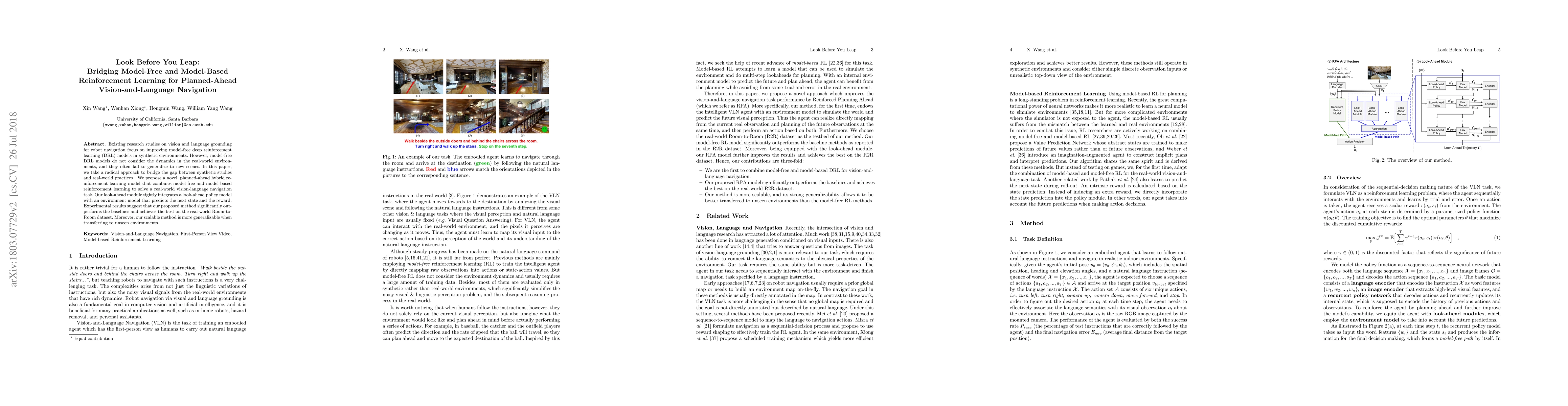 This paper proposes a hybrid reinforcement learning model that combines model-free and model-based approaches to enhance vision-language navigation in real-world environments. The method significantly outperforms baselines and demonstrates better generalization to unseen environments.