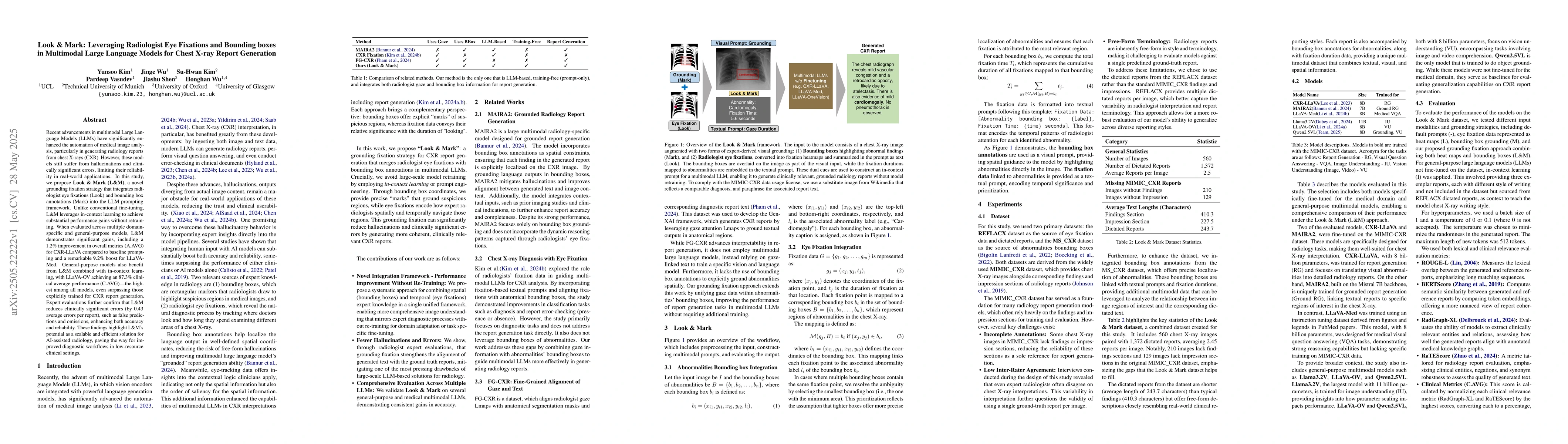 The research proposes Look & Mark (L&M), a novel grounding fixation strategy that integrates radiologist eye fixations and bounding box annotations into the LLM prompting framework using in-context learning.