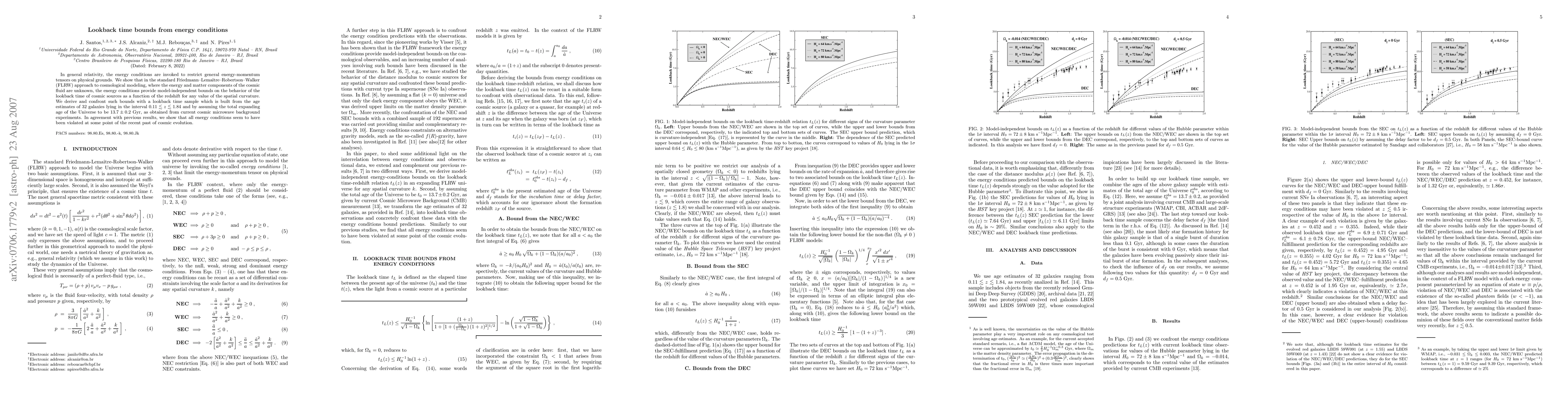This paper demonstrates that energy conditions in general relativity provide model-independent bounds on the lookback time of cosmic sources in FLRW cosmology, regardless of spatial curvature. It finds that these bounds are violated at some point in the recent cosmic past, as evidenced by the ages of 32 galaxies.