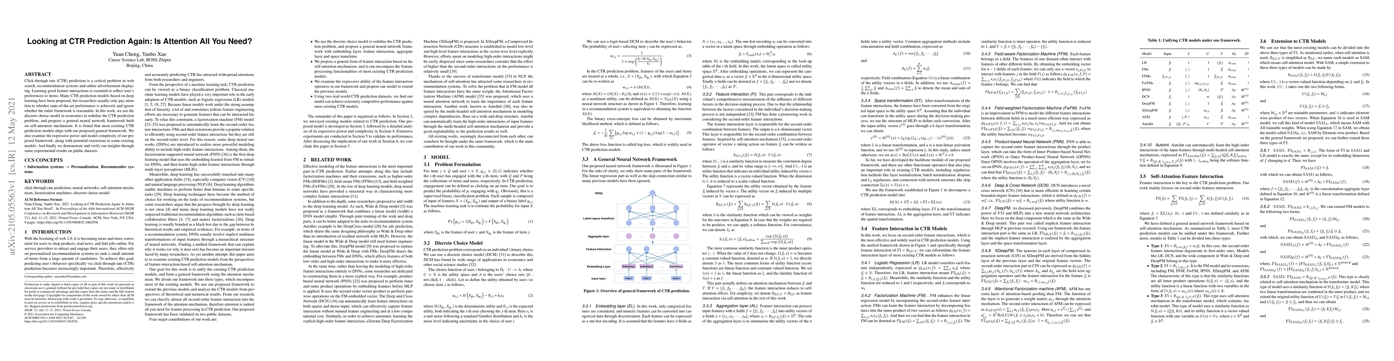 This paper redefines click-through rate (CTR) prediction using a discrete choice model and proposes a self-attention neural network framework. It finds that most existing CTR models fit into this new framework and explores its expressive power and complexity, validated through experiments on public datasets.
