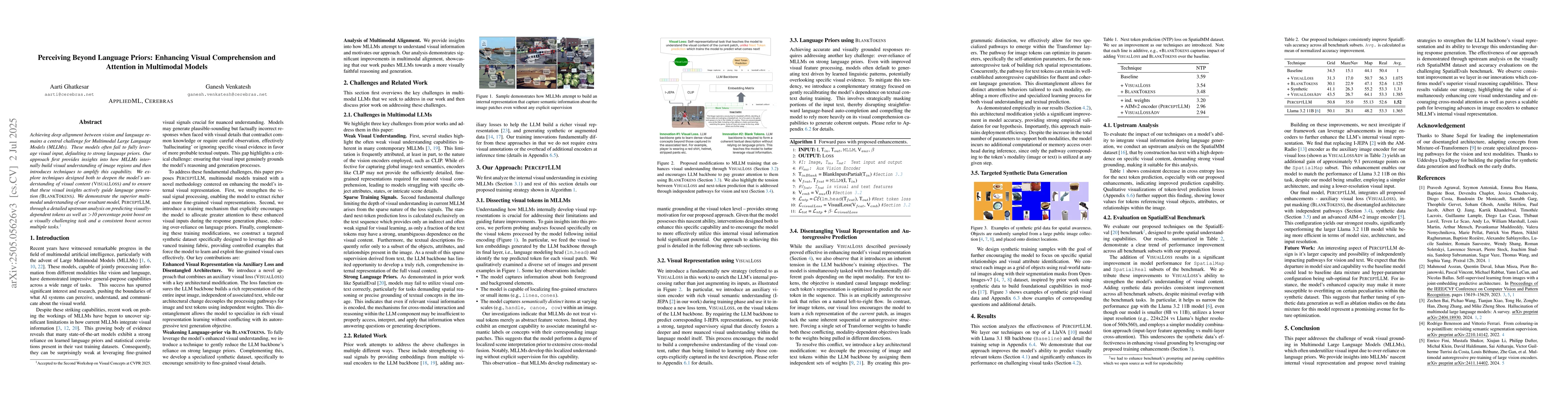This work stands out by focusing on enhancing visual comprehension and attention in multimodal models, moving beyond strong language priors that current MLLMs often default to.