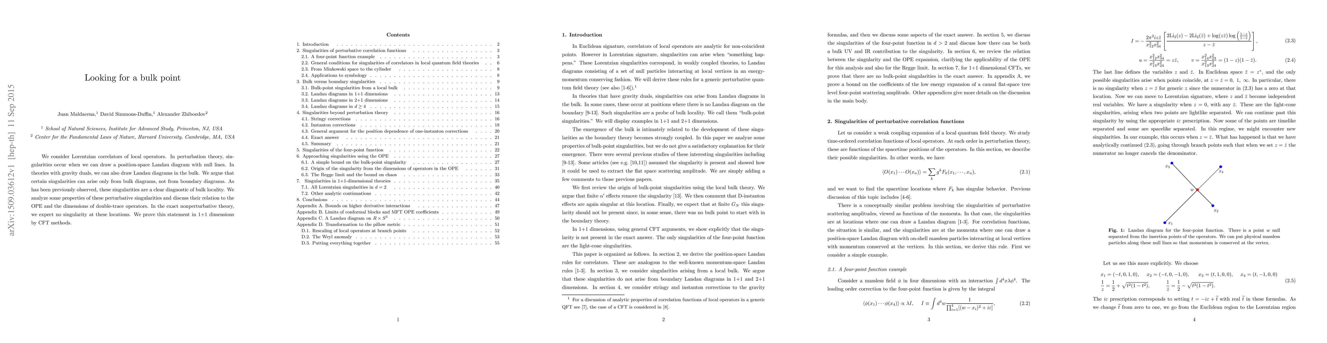 We consider Lorentzian correlators of local operators. In perturbation theory, singularities occur when we can draw a position-space Landau diagram with null lines. In theories with gravity duals, we can also draw Landau diagrams in the bulk. We argue that certain singularities can arise only from bulk diagrams, not from boundary diagrams. As has been previously observed, these singularities are a clear diagnostic of bulk locality. We analyze some properties of these perturbative singularities and discuss their relation to the OPE and the dimensions of double-trace operators. In the exact nonperturbative theory, we expect no singularity at these locations. We prove this statement in 1+1 dimensions by CFT methods.