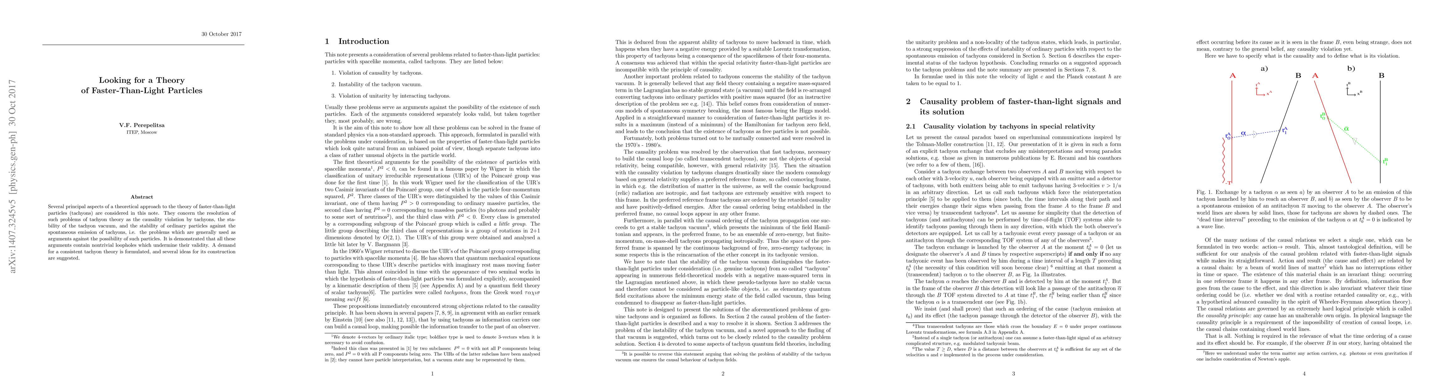 Several principal aspects of a theoretical approach to the theory of faster-than-light particles (tachyons) are considered in this note. They concern the resolution of such problems of tachyon theory as the causality violation by tachyons, the stability of the tachyon vacuum, and the stability of ordinary particles against the spontaneous emission of tachyons, i.e. the problems which are generally used as arguments against the possibility of such particles. It is demonstrated that all these arguments contain nontrivial loopholes which undermine their validity. A demand for a consistent tachyon theory is formulated, and several ideas for its construction are suggested.